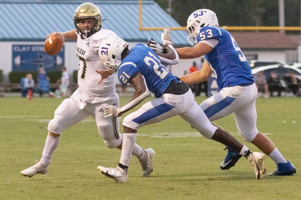 Quarterback Drew Ammon scramble away from Clay defenders#21 Errick Fryer and #53 Warner Thompson – Will Brown Like this:Like Loading...Pages: Page 1, Page 2, Page 3, Page 4, Page 5, Page 6, Page 7, Page 8, Page 9, Page 10, Page 11, Page 12, Page 13, Page 14, Page 15