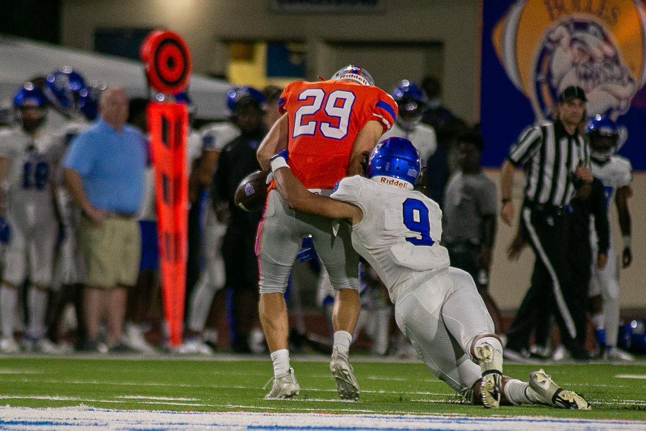 It was a scoreless first quarter that saw Bolles and Trinity trade jabs on defense and special teams. Trinity’s linebacker Keaton Thomas nabbed his second interception of the year stalling a promising first quarter drive by Bolles. The Bulldogs would then block not one but two punts in the first quarter by Patrick Green, and then by Patric Menc. However Bolles was unable to do anything with their offensive possessions after 4th down stops by Jonathan Goddard and Thomas Fryer. That would end in a hurry.