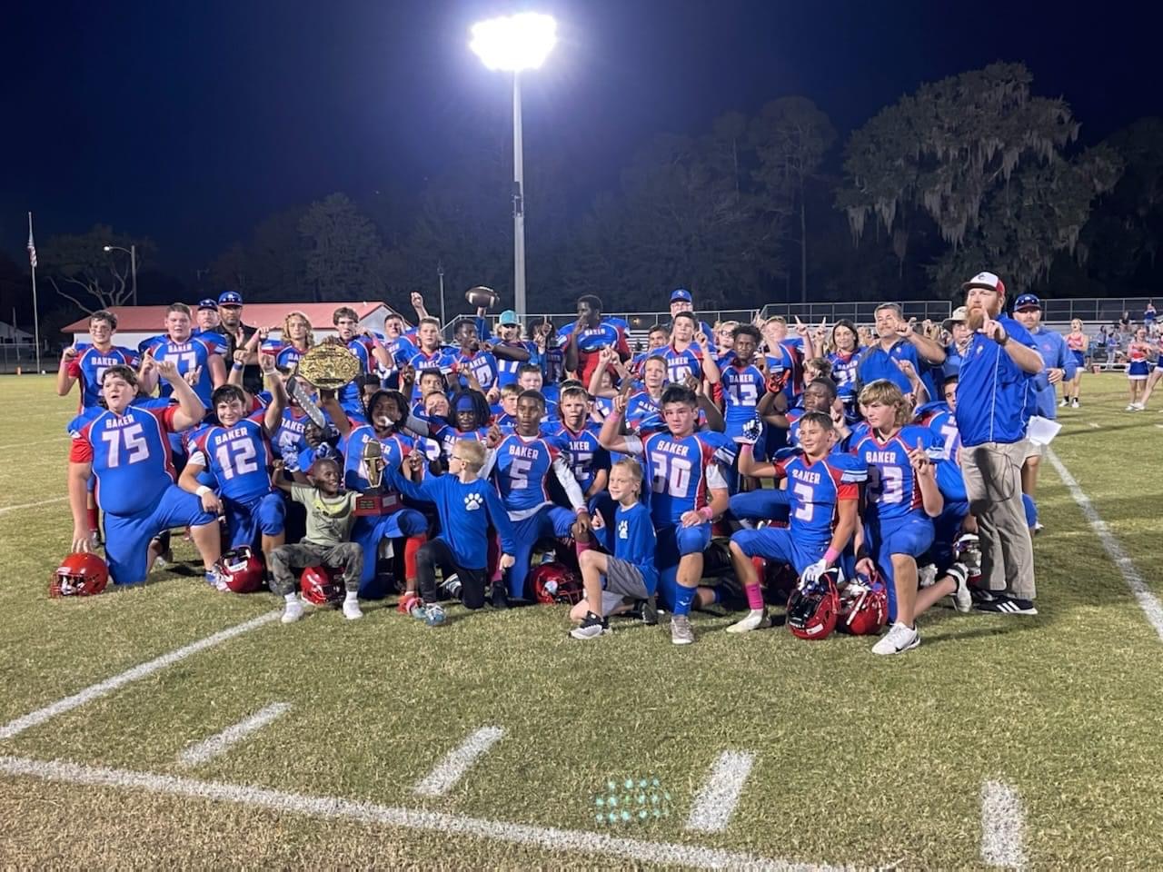Macclenny Fl- For the second year in a row, the Baker County Football team was crowned champions of Middle School Football. The Bobcats defeated Lakeside 36-0 to be crowned champions. It was a memorable year for Baker County. They were the masters of serving donuts all year. They defeated Lake Asbury 43-0 and Wilkerson 47-0 on their way to an undefeated season. Green Cove, Lakeside, Oakleaf, Lake Asbury, and Orange Park all fell victim on the schedule. Lakeside in the championship all fell to the mighty Bobcats.