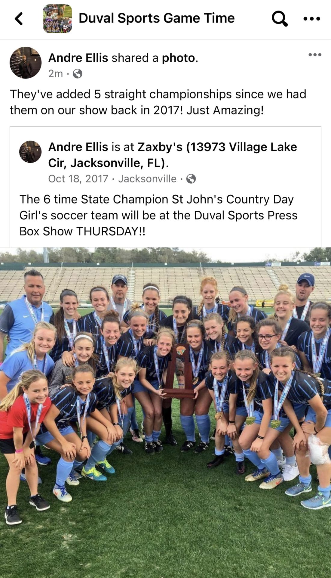 There was freshman Cece Nowicki who kicked 2 goals in an 8-0 win over St. Francis in the regional quarterfinal. St. John’s Country Day defeated Westminster Academy 8-0 in the state semifinal. Before that, they downed Christ’s Church 8-0 to win the Class 2A Region 1 Championship. A very special moment for Coach Pickett who won his 500th career game in his illustrious career.