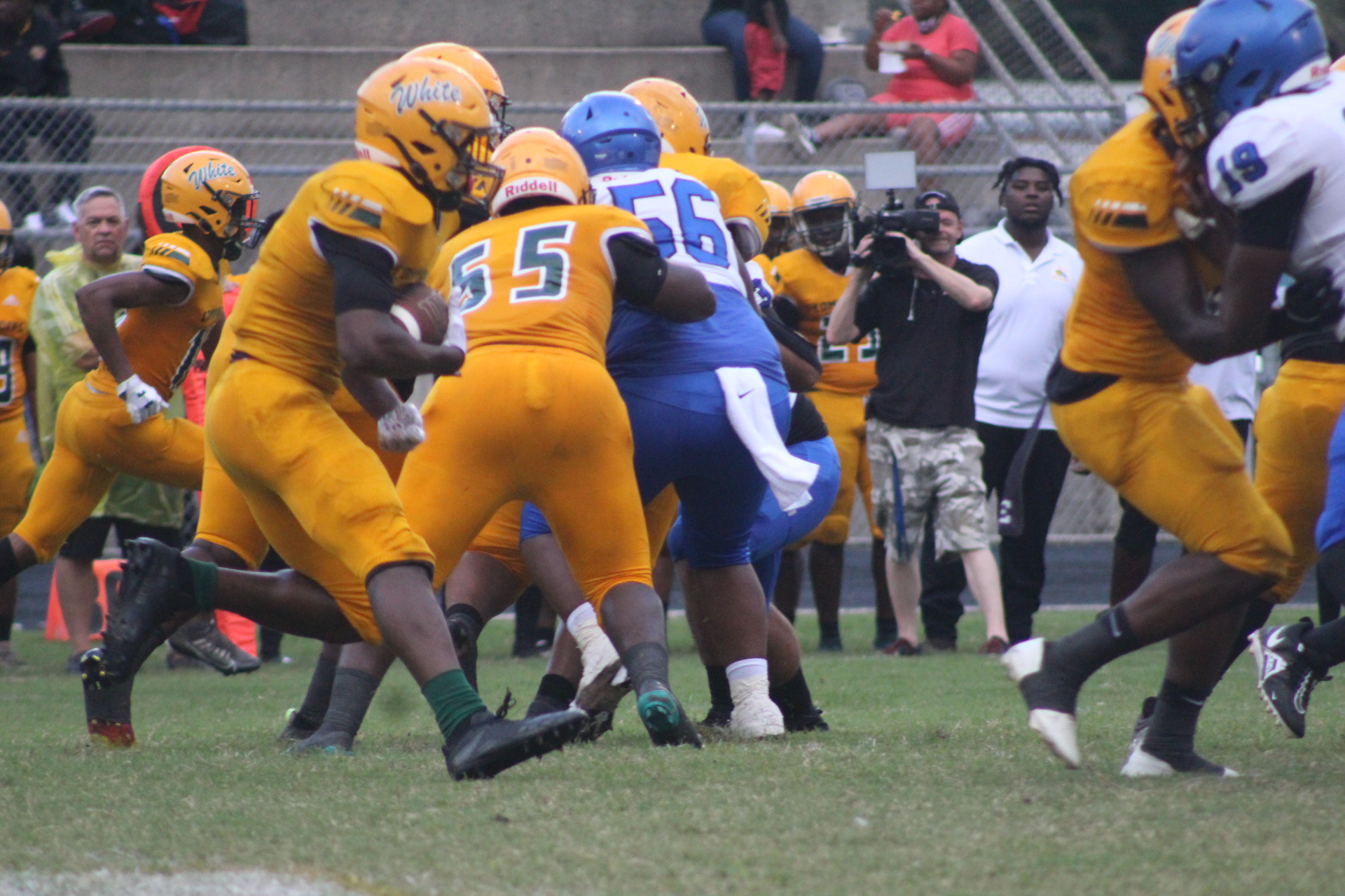 4. Ed White (1-1)- It was a homecoming for Coach Lawrence Johnson at Sandalwood (1-1) as his Ed White Commanders came away with a dominating 26-10 win over the Saints. Let’s start with the Commander defense. Darrius Mays registered 3 sacks while Jamari Allen had 2.5 sacks. In all, Ed White had 7 sacks in the game as they built a 20-3 first half lead. The offense was led by Isiah Teal who tossed 2 touchdowns, and the return of wide receiver Xavier Baldwin who caught 2 passes for 112 yards. Return from what? I’m glad you asked…Baldwin suffered a season ending injury last year mid-season, dealing a blow to their high powered offense. So White is certainly pleased to have him back in the line-up this year . A new comer in Tavales Thomas had a big game, rushing for132 yards and a touchdown. Ed White hosts undefeated Englewood (2-0) this Friday.