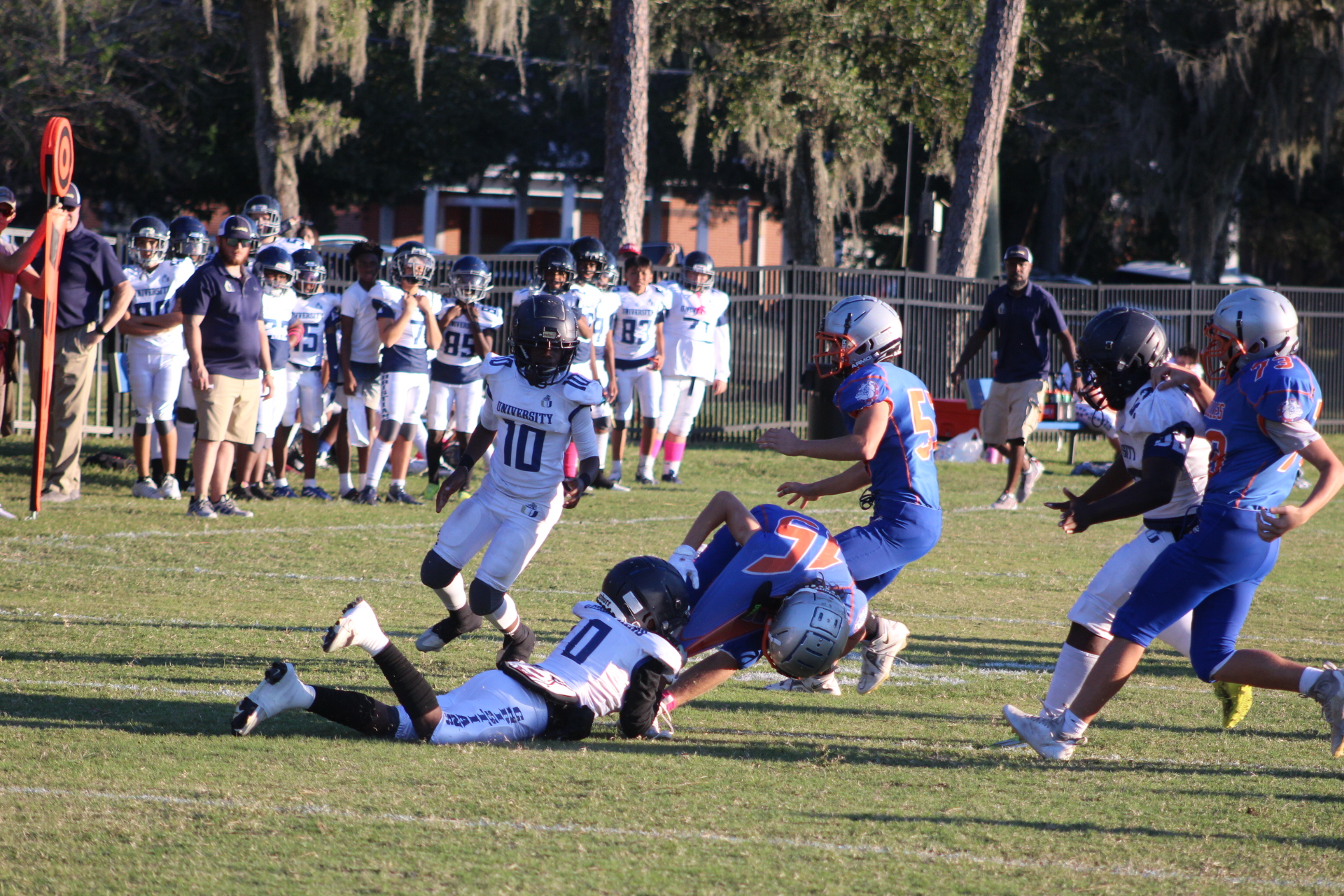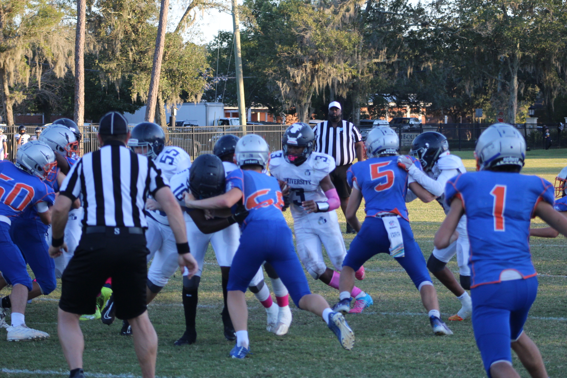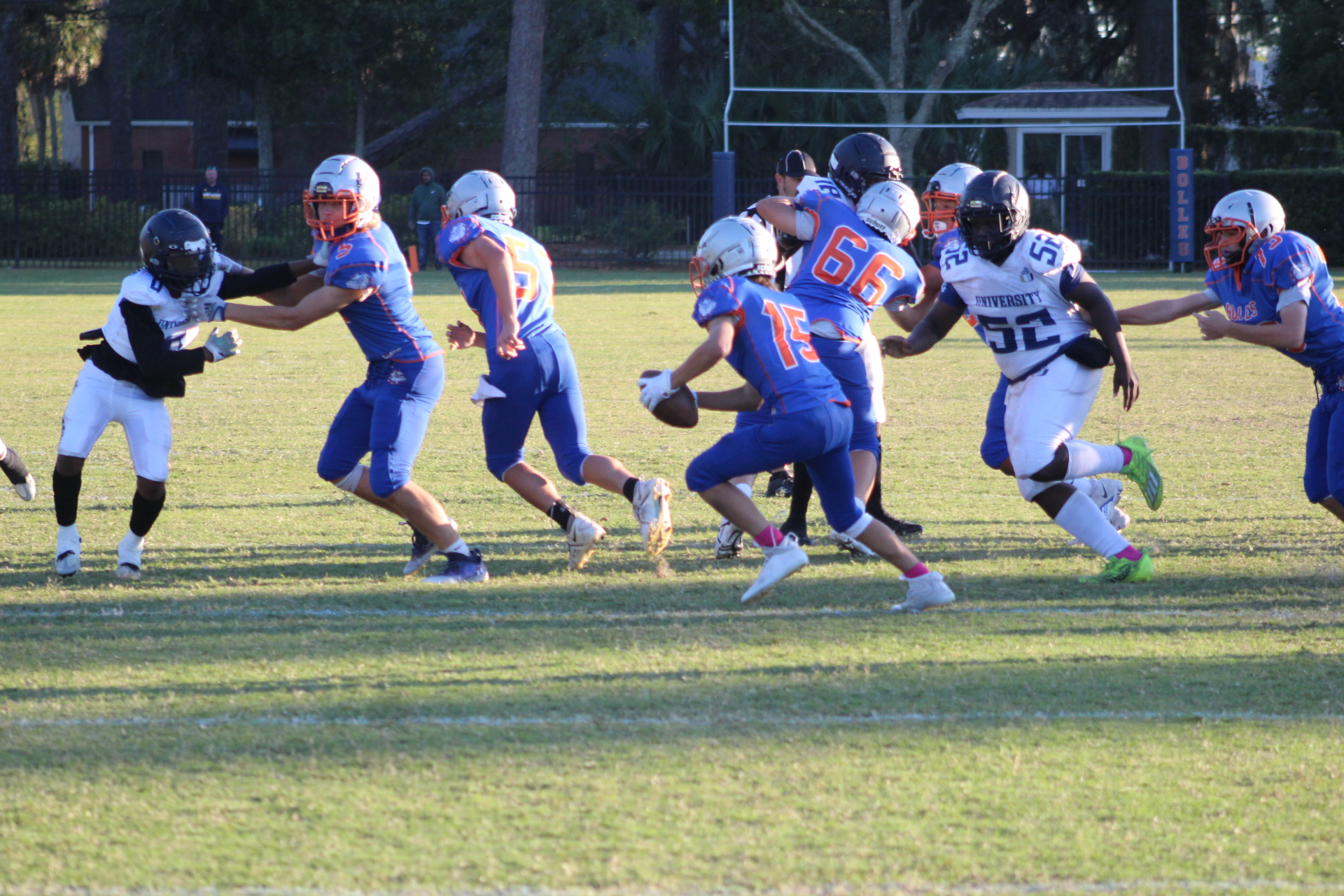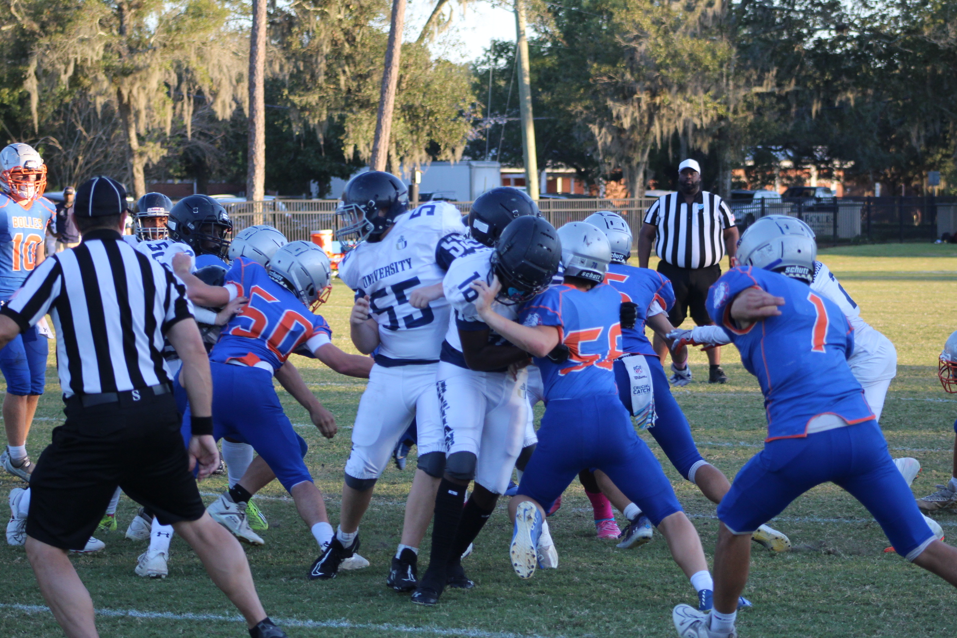 Matthews scored twice in the game, his first score put University Christian up 6-0 in the first quarter. However, Bolles would respond with their power running game behind big Xander Edwards. Big first downs by Edwards turned into touchdowns as Bolles tied the game.