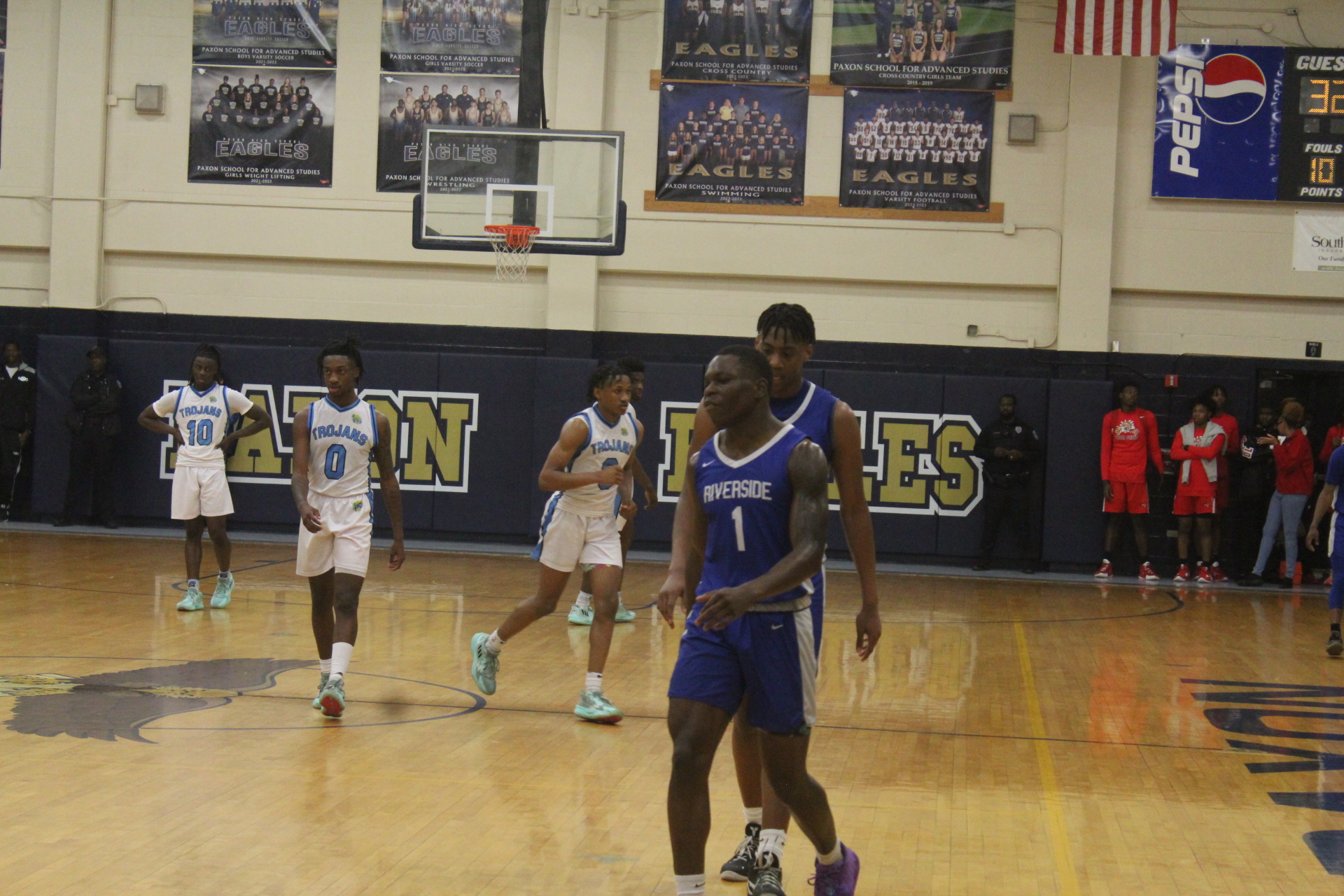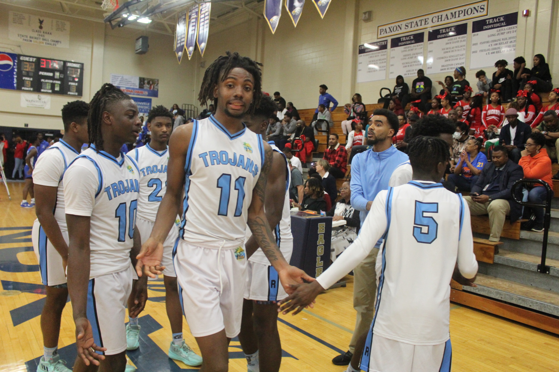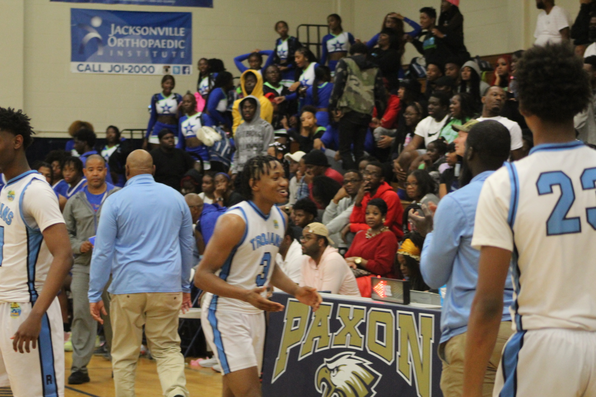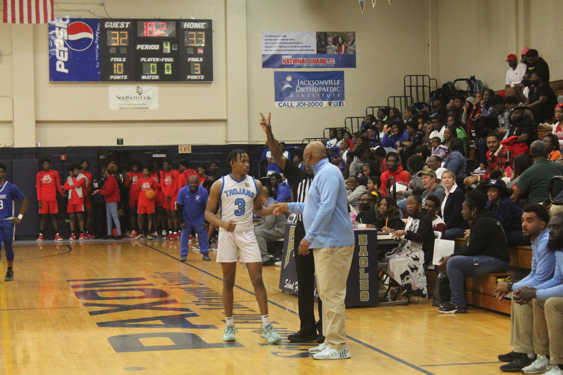 Jacksonville Fl- At halftime of the Boys Basketball Gateway Conference Semifinals Wednesday, Ribault led Riverside 23-15. The reason the Trojans were able to jump out on the Generals was in-part the play down low by 6 foot 5 inch Kalvin Gilbert. The senior dual sport athlete dominated the paint scoring 8-points and grabbing 8-rebounds in the first half. He was the difference, heeding the coaching commands of Charles Showers who instructs his team to start fast and build a lead. This forces opponents to play catch up which many are unable to do. The Trojan’s arsenal of scorers is what forced Riverside to do just that in their contest, catch up..