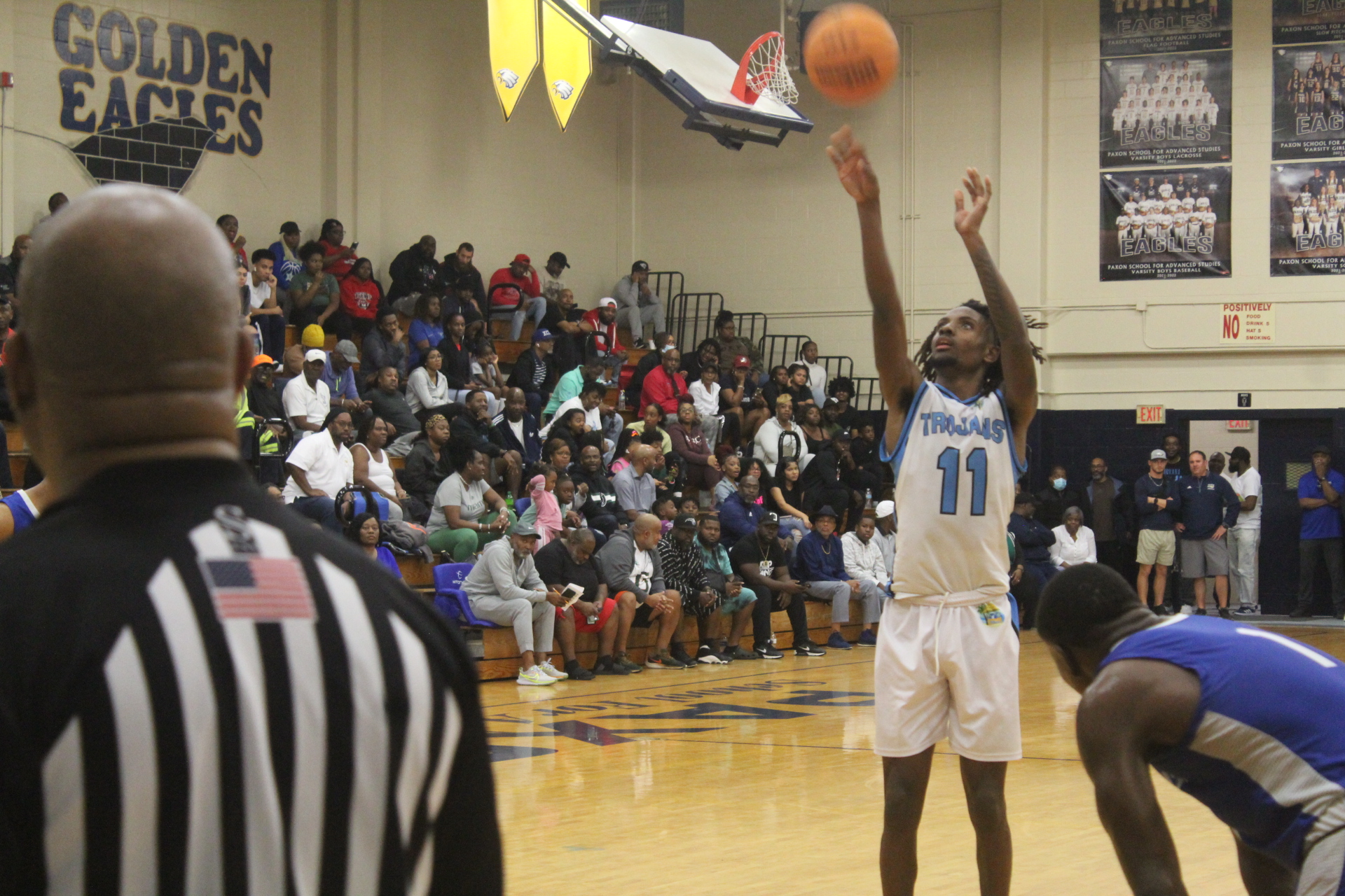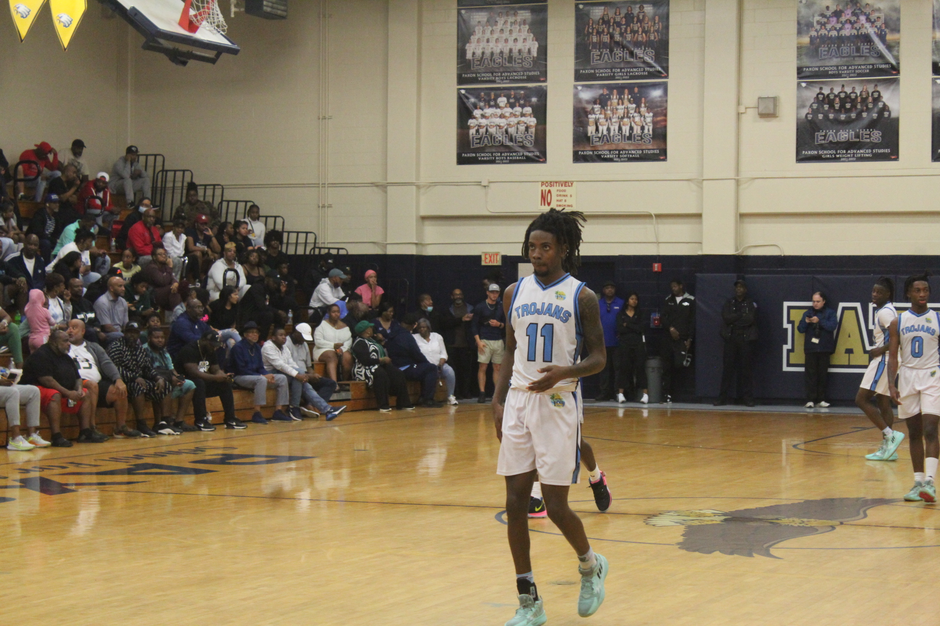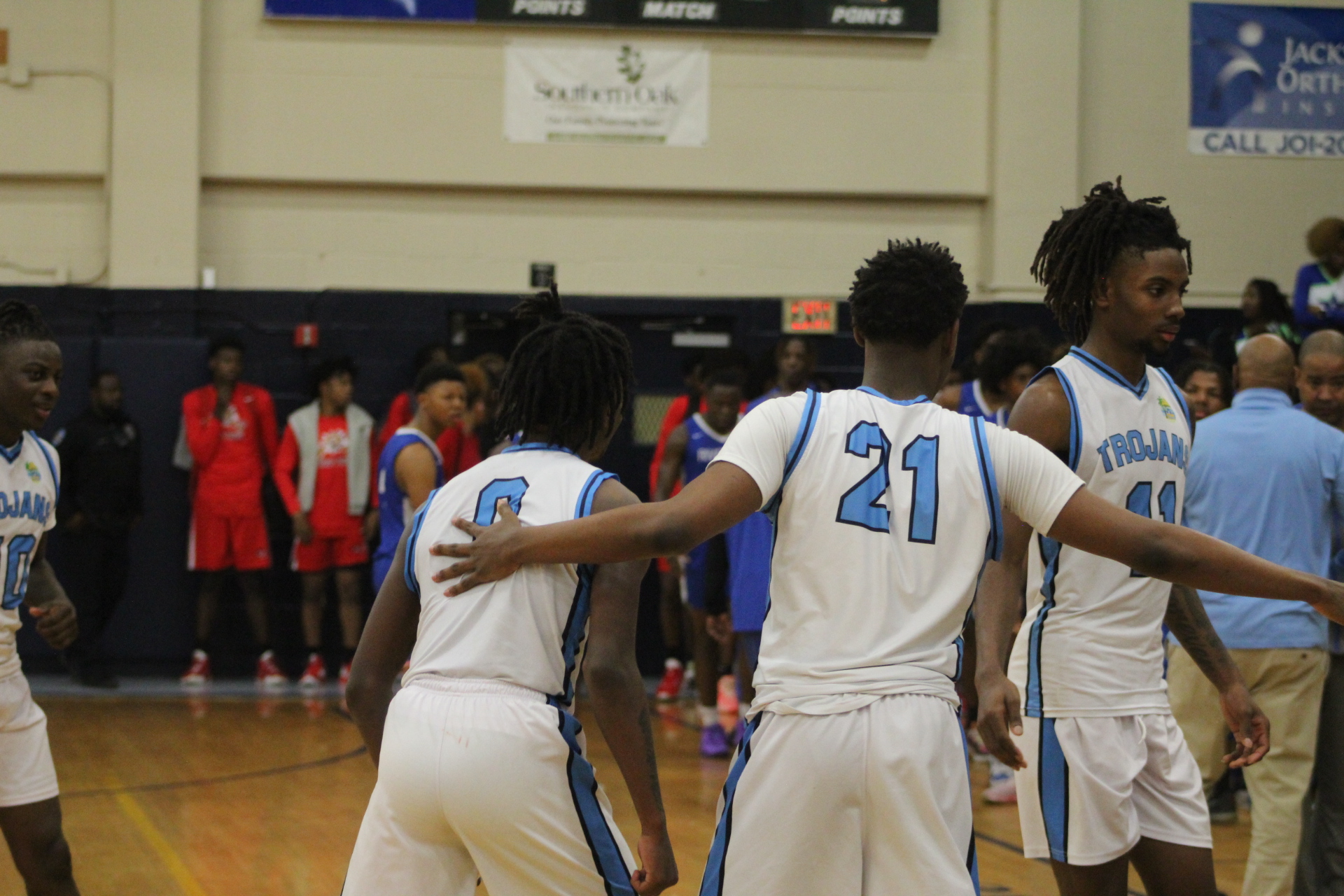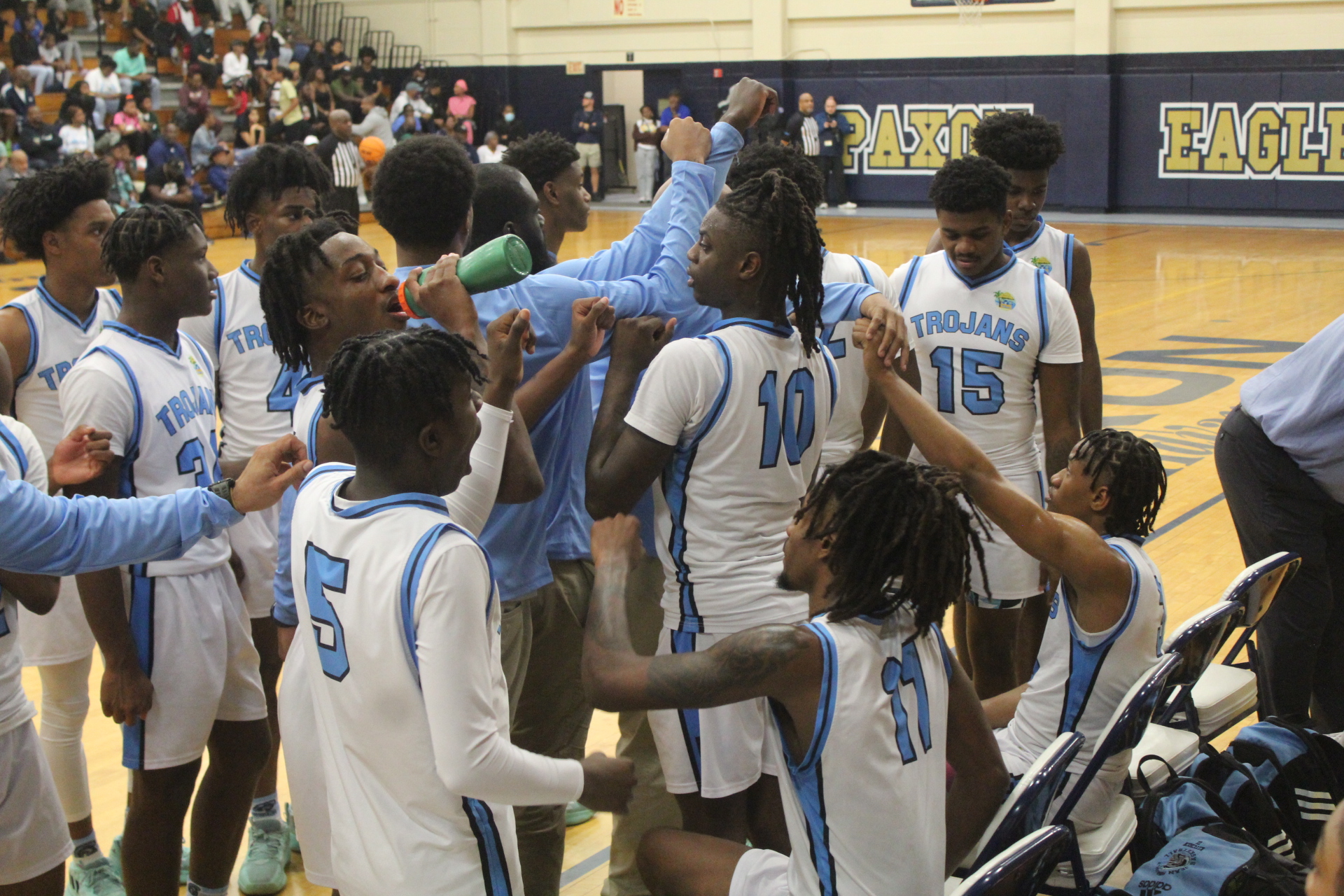 Jacksonville Fl- At halftime of the Boys Basketball Gateway Conference Semifinals Wednesday, Ribault led Riverside 23-15. The reason the Trojans were able to jump out on the Generals was in-part the play down low by 6 foot 5 inch Kalvin Gilbert. The senior dual sport athlete dominated the paint scoring 8-points and grabbing 8-rebounds in the first half. He was the difference, heeding the coaching commands of Charles Showers who instructs his team to start fast and build a lead. This forces opponents to play catch up which many are unable to do. The Trojan’s arsenal of scorers is what forced Riverside to do just that in their contest, catch up..