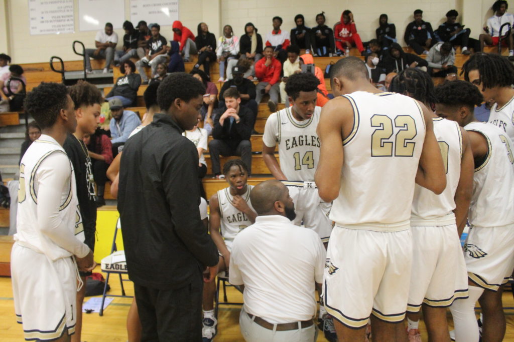 It was an all around effort as junior Brysan Yearby hit open shots from 20-feet. He scored 6 of his 8-points in the first half. Jacob Delos Santos also was a big factor in the first half, scoring 9-points and hitting a big three-pointer to galvanize the home crowd. Head Coach Kenny Elliott was able to draw up open looks for his players, and they capitalized.