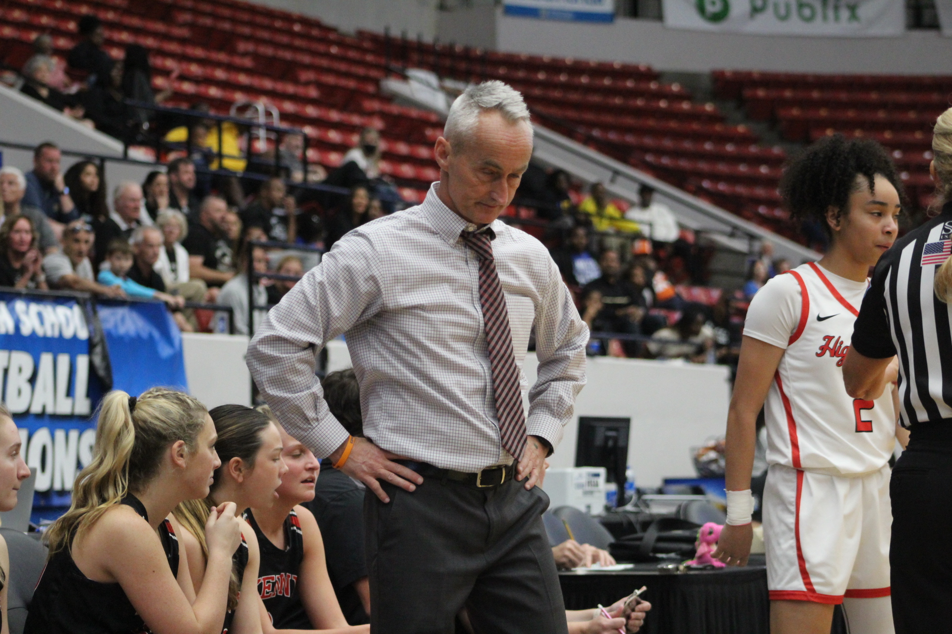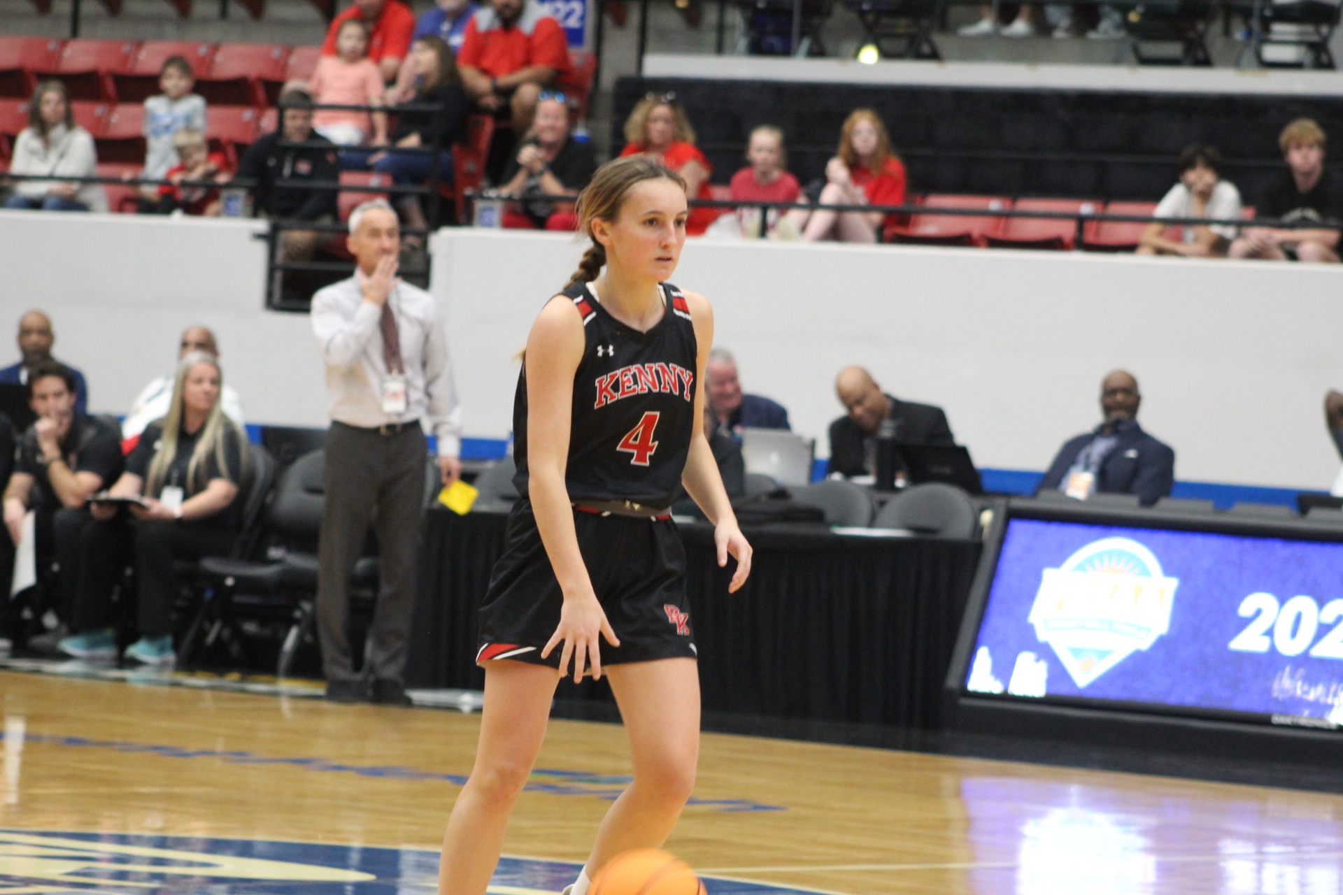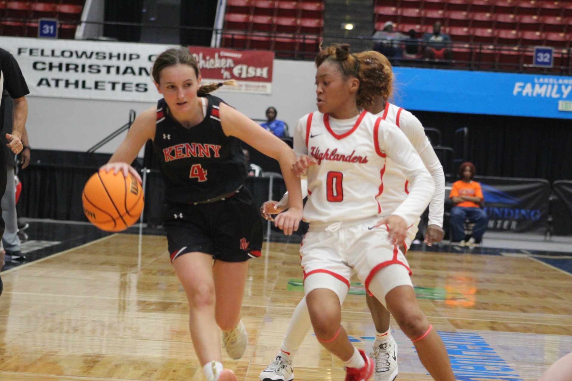 Lakeland Fl-The Bishop Kenny Crusaders fell to the Lake Highland Prep Highlanders 55-45 in the Class 4A State Championship Saturday. The Highlanders earned their 4th straight title and 6th FHSAA championship overall. Kenny had it’s best season in school history at 30-2. Said head coach Will Mayer, ” I think what contributed to our success this year is that we had alot of players step up and we don’t just lean on one player.” It truly was a team effort by BK, as state runners-up. Check out their championship game photo gallery below.