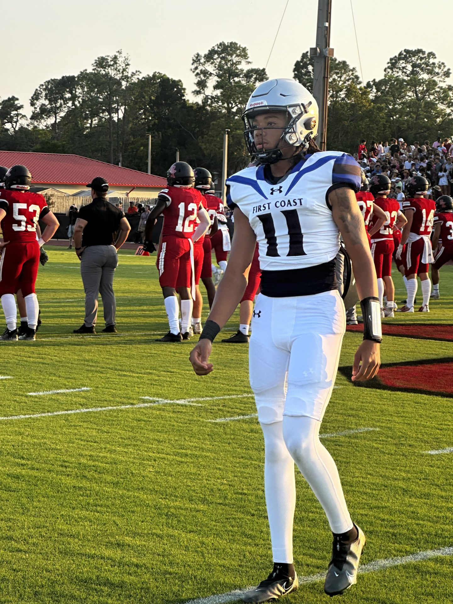 Passing for 1,873yds, and 18 TDs (Western Kentucky Commit) Rodney Tisdale Jr has revived First Coast football and “Marty Ball”. Coach Marty Lee is able to toss the ball around as he did with QB Deandre Johnson (USFL). One indicator of a great quarterback is his ability to shine light on everal receviers, and Tisdale has done that at First Coast.