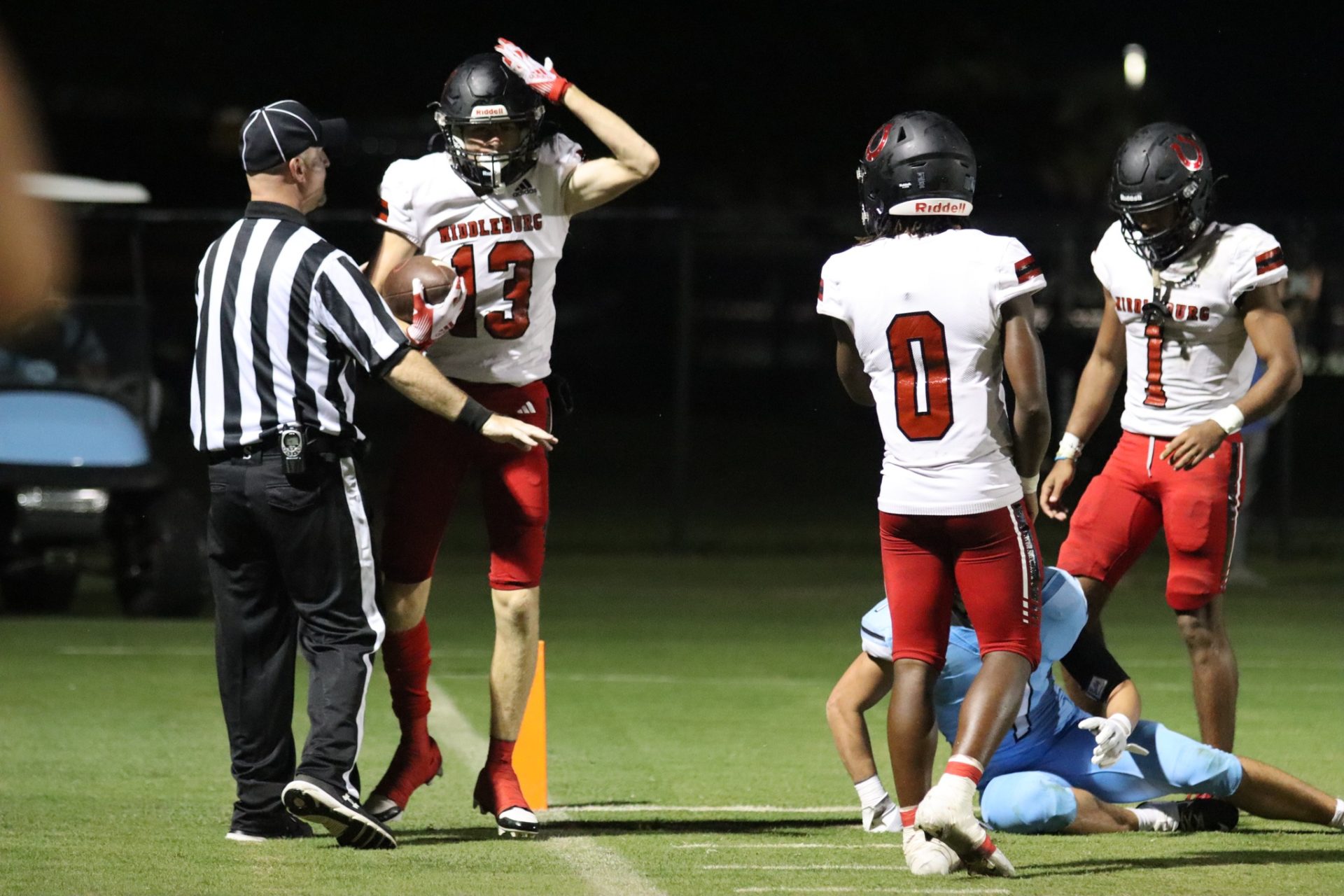 Several wide receivers scored for Ponte Vedra against Middleburg, four to be exact. #4 Cole Madson scored twice. #2 Ryan Smith scored once. #8 Landon Okla scored once, and #14 Griffin Owen scored once. Owen only caught one ball on the night but made it count, as he went in from 9-yards out. It was his first touchdown of the season. He is one of many pieces to a Ponte Vedra squad that’s well-balanced across the board.