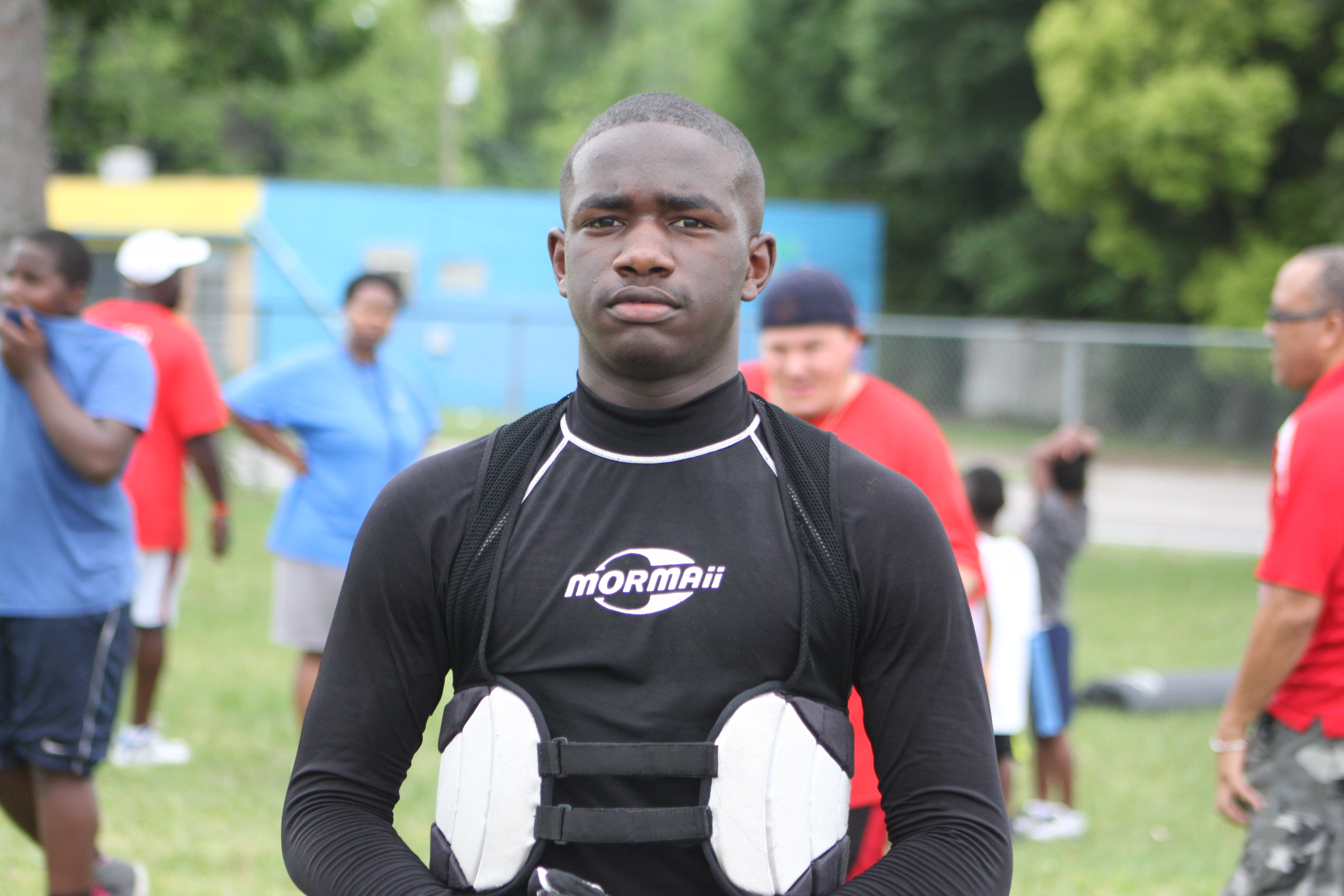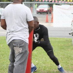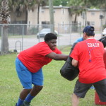 Two players that are benefiting from their experiences are running back Darryl Johnson and offensive lineman Ben Kunkel. Johnson is a 15 yr old running back for the broncos who has been playing for six years. Johnson’s chiseled makeup separates him from ordinary fifteen year olds. He hopes that his play on the field also separates him from the rest. Kenkel is separated by sheer size alone. The fourteen year old is 6’2, and every bit of 280 pounds. Both players are excited about playing 14U in the St. Johns River Youth Football League, and excited about the horizon for their teams.