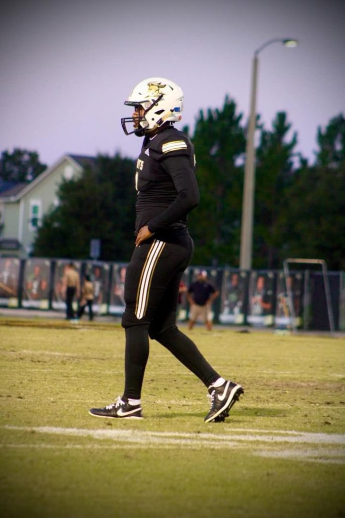 Week 4 Away vs Oakleaf- Broughton brought with him spectacular plays courtesy of his arm and especially his legs. He passed for 180 yds 1 TD and rushed for 92 yards in the loss. A Duval Sports coorespondent at the game is quoted in saying, “Broughton reminds me of Jordan Travis”. High praise for the junior, who deserved to move higher on the list this week.