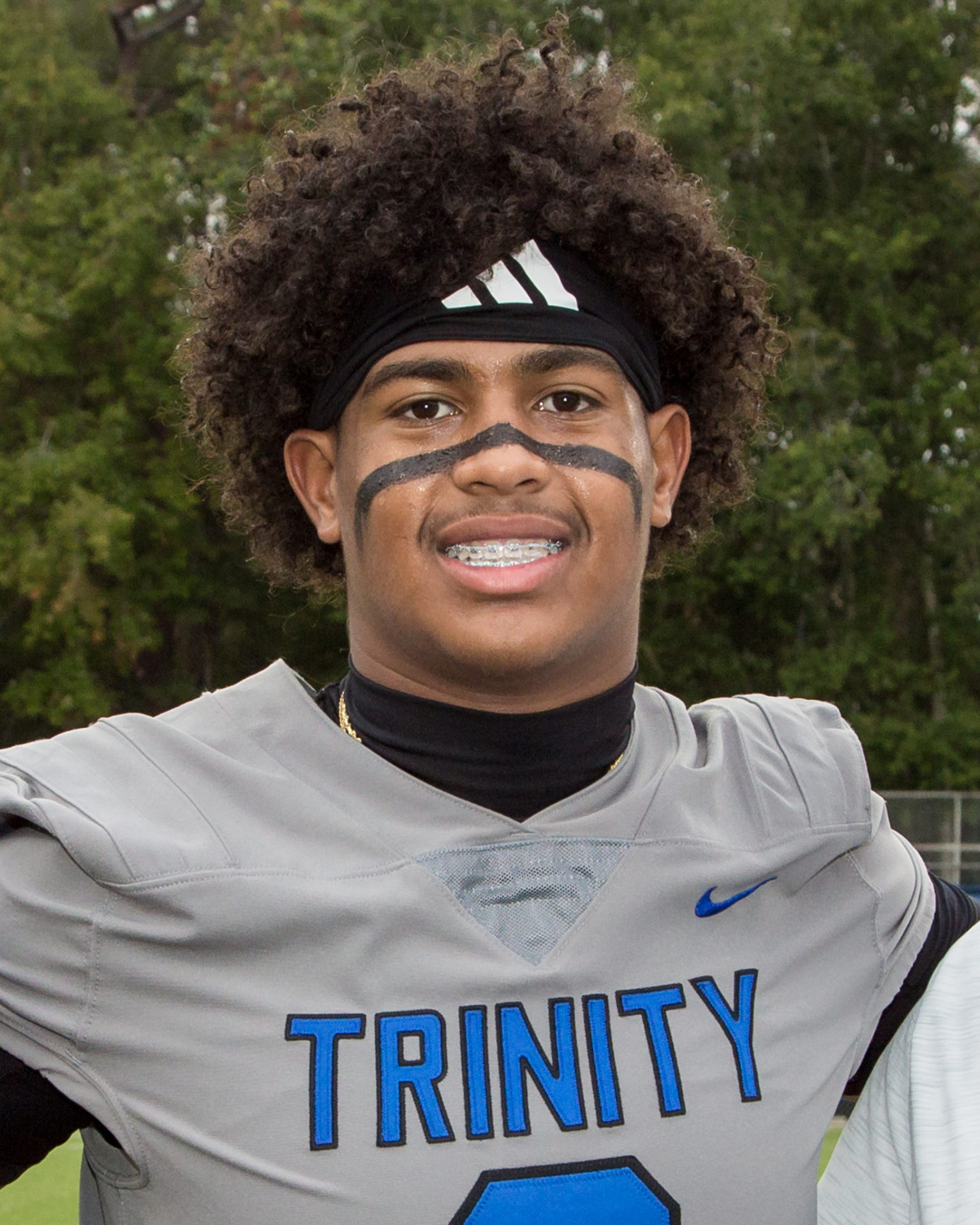 Trinity’s defense only gave up one score against a very good Rockledge team. They held Rockledge’s offense scoreless in the first half, and in overtime. Linebacker Lovell Vereen lead the team in tackles with 12 against Rockledge. Kaleel Vereen got a sack, as well as Michael Sterdivant who now leads the team with 6.5 on the season. Two stand out performances to note. One occured in the 4th quarter, after Rockledge blocked a punt on Trinity’s own 12-yard line, the defense held and forced a field goal. Sterdivant came up big again with a blocked field goal.