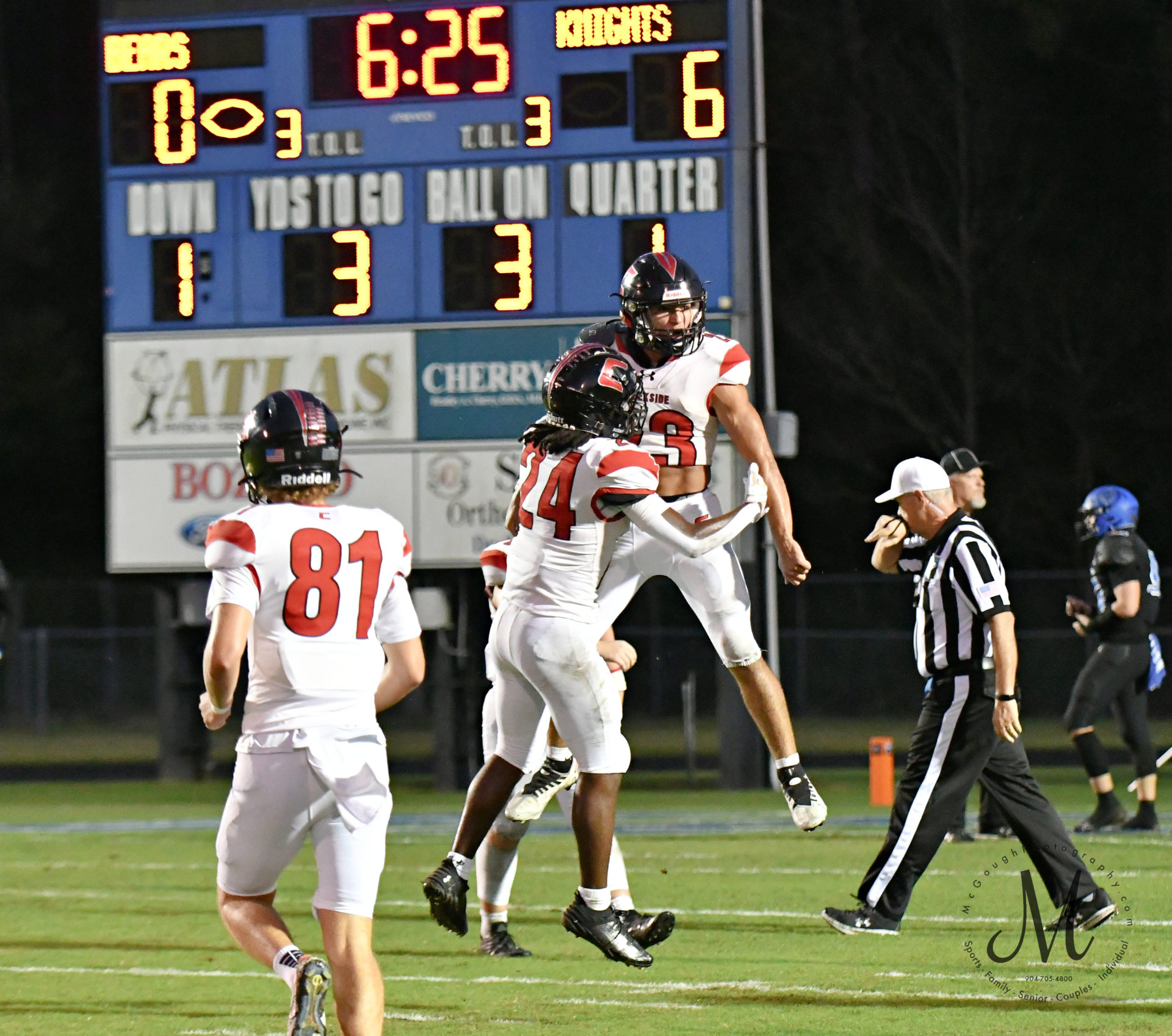 Others stepped up for Bartram with their starting QB out and starting runningback put in a wildcat situation. Joe Davoli #12, and Deandre Caldwell #82 benefited from the Knight’s commitment to stop the run. Davoli finished with 35-yards and a TD, while Caldwell caught 4 balls for 84-yards and a TD. Davoli’s touchdown pulled Bartram ahead for the first time in the game. Caldwell showcased his athleticism on his touchdown right out of halftime. Arthur Lewis was used as a rusher and a receiver scoring a touchdown on the ground.