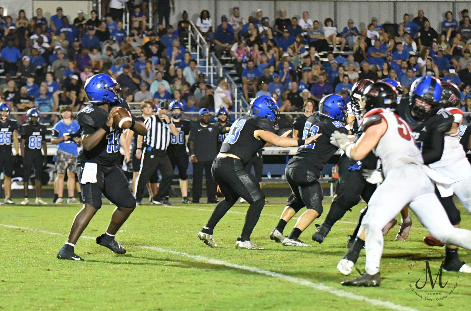 For sophomore quarterback Jaden Weatherly, experience has been the best teacher. He was called upon to start for Bartram early in the season after starter Riley Trujillo was sidelined with an injury. During those games, Weatherly gained lots of experience in a game managing role that leaned heavily upon the run game. However, Friday against Creekside Weatherly would get another start due to a sidelined Trujillo, and he did much more than manage the game. Weatherly made crucial throws and runs in the game, passing for 178-yards, 2 touchdowns and finished with a102 Passer Rating.