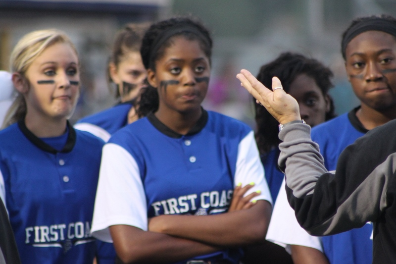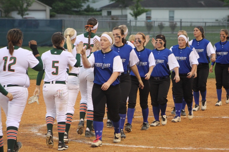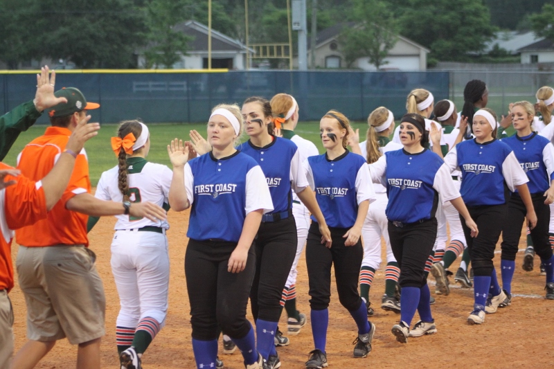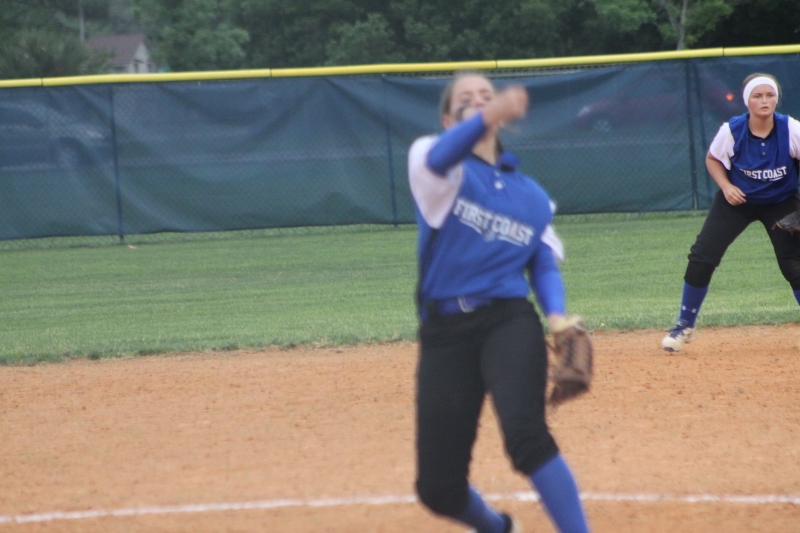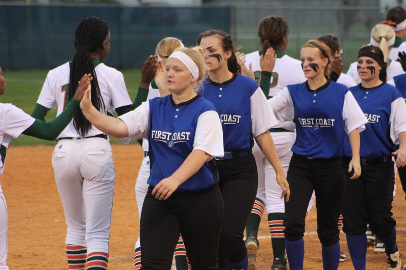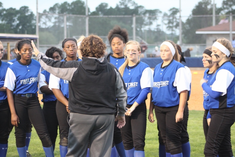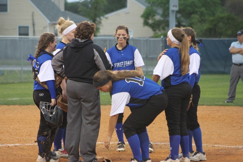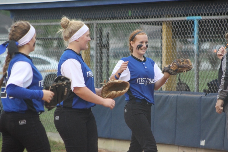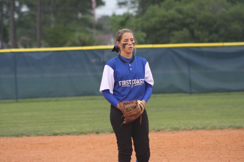 After the early barrage First Coast buckled down and stepped up the defense. The Buccaneers were able to strike out Mustang batters and held them scoreless for three straight innings. But the Bucs could not capitalize on the window of opportunity, failing to generate any offense in this span. In the fifth, Mandarin’s Alexa Anto smashed a three run triple into right field increasing the lead to 7-0. McKenzie Kern added an RBI next ballooning the lead to eight. Finally, senior Alexa Moore closed out the contest with a base hit pushing the score to 10-0.