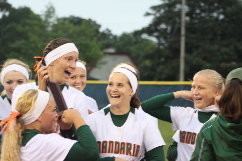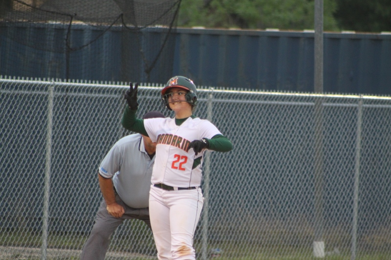 Mandarin started early as slugger Kendall Reid hit a three run home run in the first inning. The home run was Kendall’s 13th of the season and 42nd of her career both school records. Mandarin would add another run to go up 4-0 in the first.