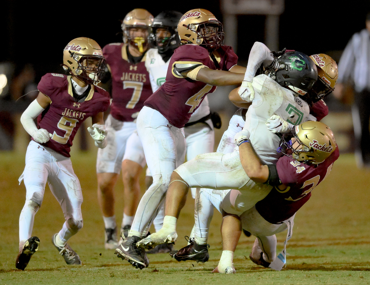 Devonte Lyons of St. Augustine has been the bell cow back for the Jackets. Lyons has 1,343 yards and 25 TDs on the season. He’s had an incredible playoff run. Round 1: 8 car 181 yds 3 TDs. Round 2: 27 car 112 yds 4 TDs, and Round 3: 27 car 133 yds 2 TDs, 2 Rec 37 yds. He’s picked up an offer in the playoffs as well from FIU, to go with others from Temple, and Georgia Southern. St. Augustine’s offensive line led by Tarvarian Keenon and Jalen Freeman has helped the Jackets rush for 2,169 yards and 40 touchdowns.