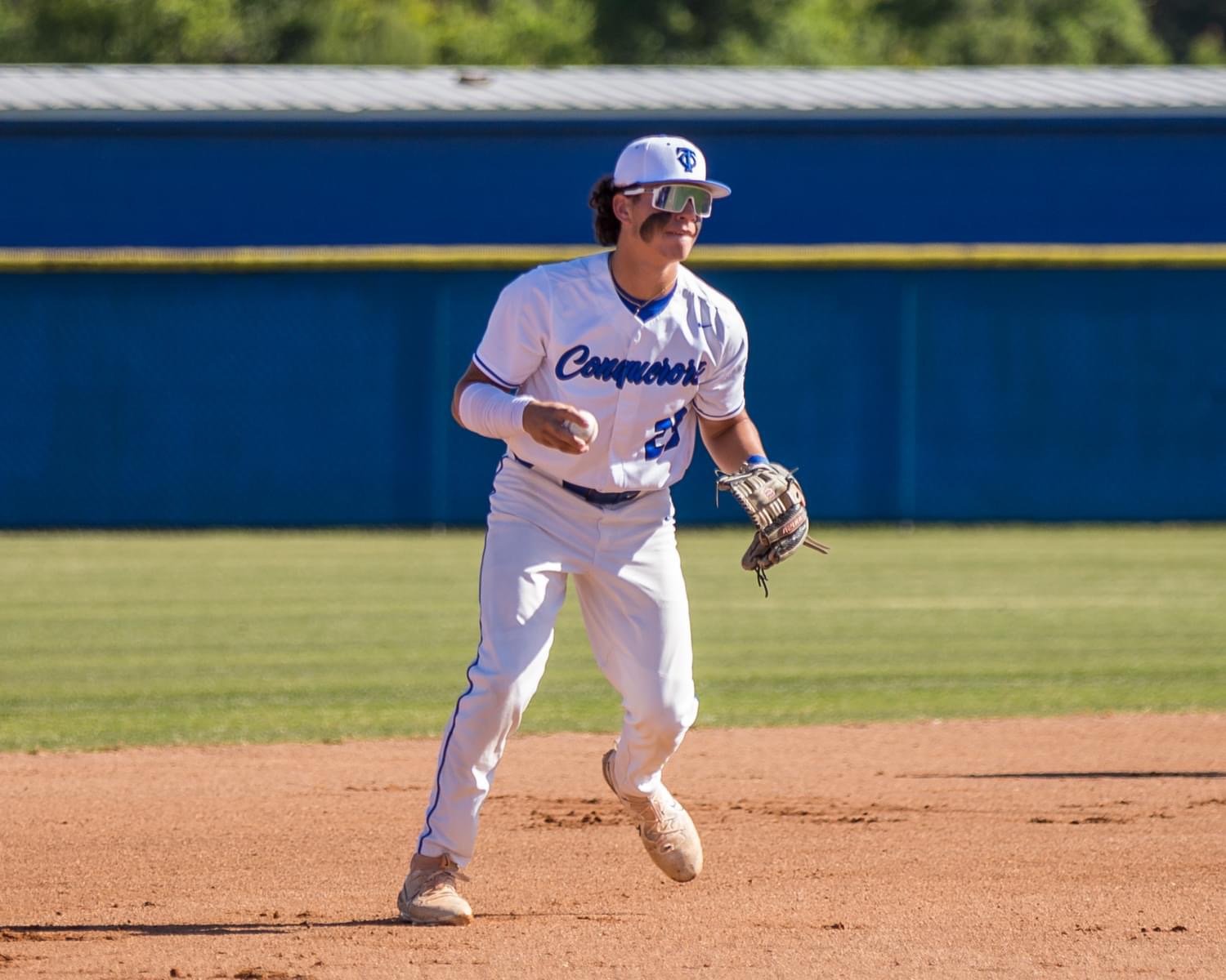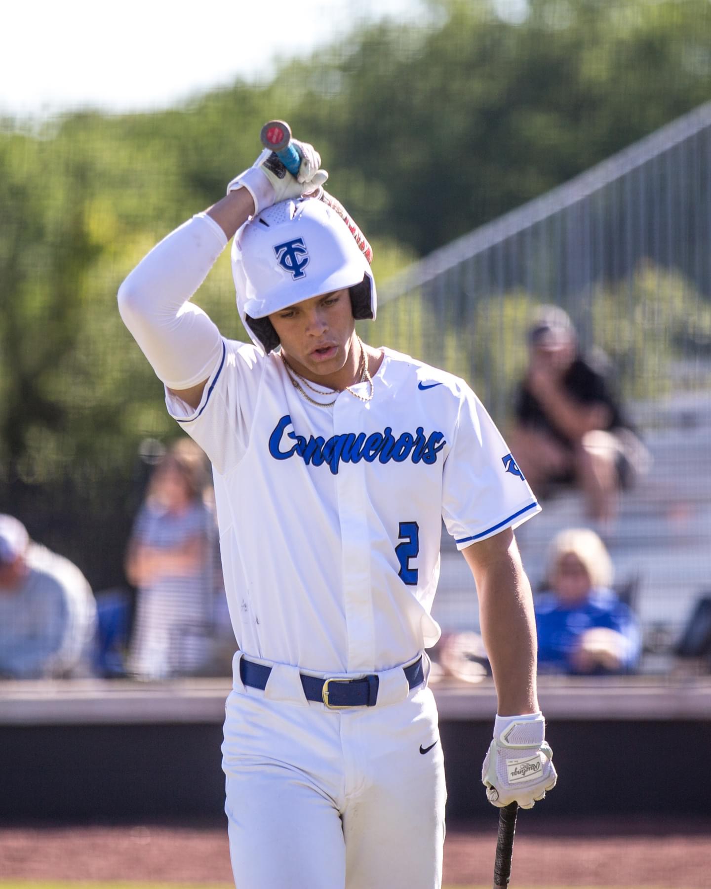 Trinity sophomore Brady Harris started the scoring with a first-inning solo home run (5). The Conquerors added a run in the second when sophomore Tyler Ellis tripled home Gage Petrutz.