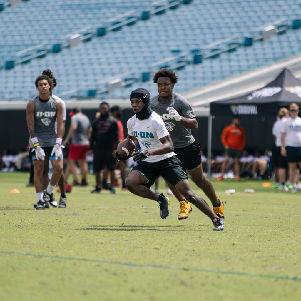 The Jacksonville Jaguars held their annual 11-on tournament hosted by Jaguars Prep. Some of the top talent in the country were featured this weekend. Players who will be suiting up this fall for high school ball, but will be dawning the helmet and shoulder pads on Saturdays as well.