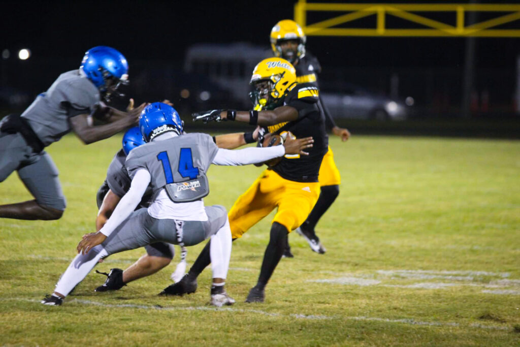 In fact, Ed White would have success running the ball at times, they scored another rushing touchdown with Rontrez Loyd. But penalties and miscues plagued them all game. Trinity was also penalized several times, indicative of a game with young inexperienced players, but also the weather. Trinity would put the game away in the fourth quarter. After a fumble by Ed White deep in their own territory, Trinity’s Terel Dallas ran the zone read and raced around the right side for the deciding score.