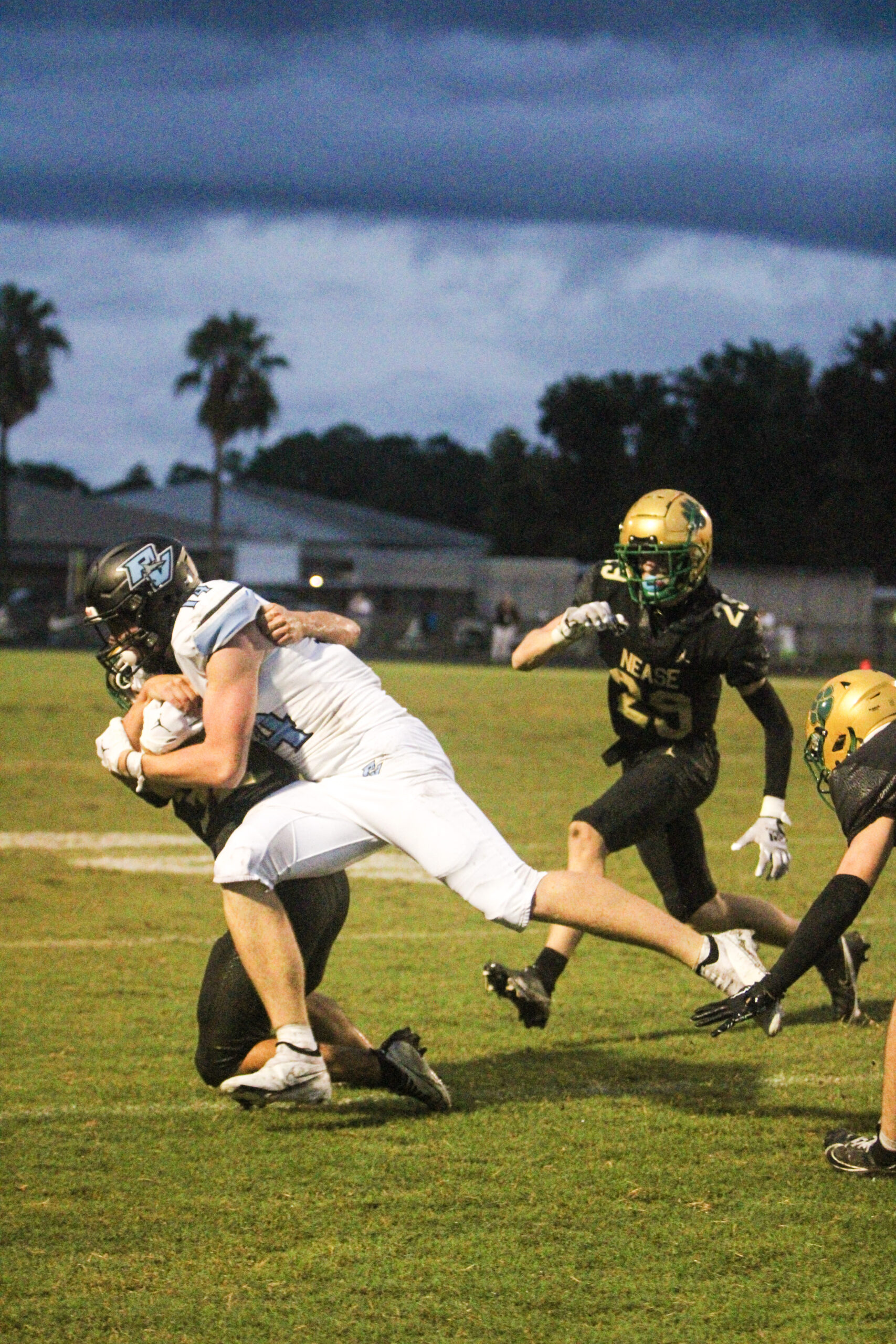 In baseball, a “fielders choice” consists of a play where a batter reaches base safely, because the defense tries to get out another baserunner. The defense’s attention is fixed on one player, while another player makes them pay by scoring. Well, in Nease’s win over rival Ponte Vedra Friday, it wasn’t a fielders choice, but it was a “Felder’s Choice” as wide receiver Brayden Felder scored two touchdowns to lead his team in receiving.