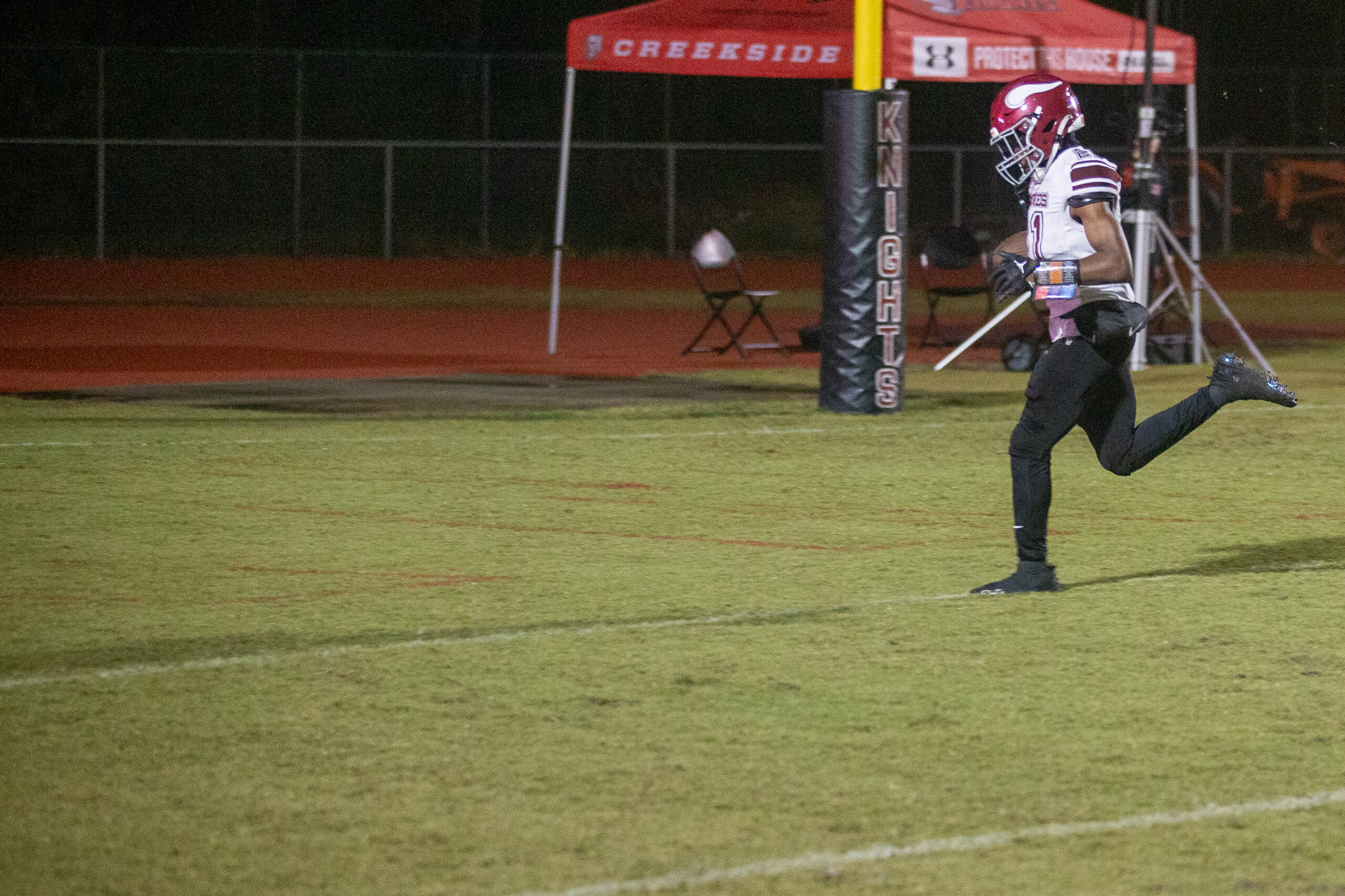Yet Raines, showed why they are on a different level than most teams in Northeast Florida. Raines would knock Creekside’s quarterback out of the game. As the Vikings’ defense lived in the Creekside backfield in passing situations all night.