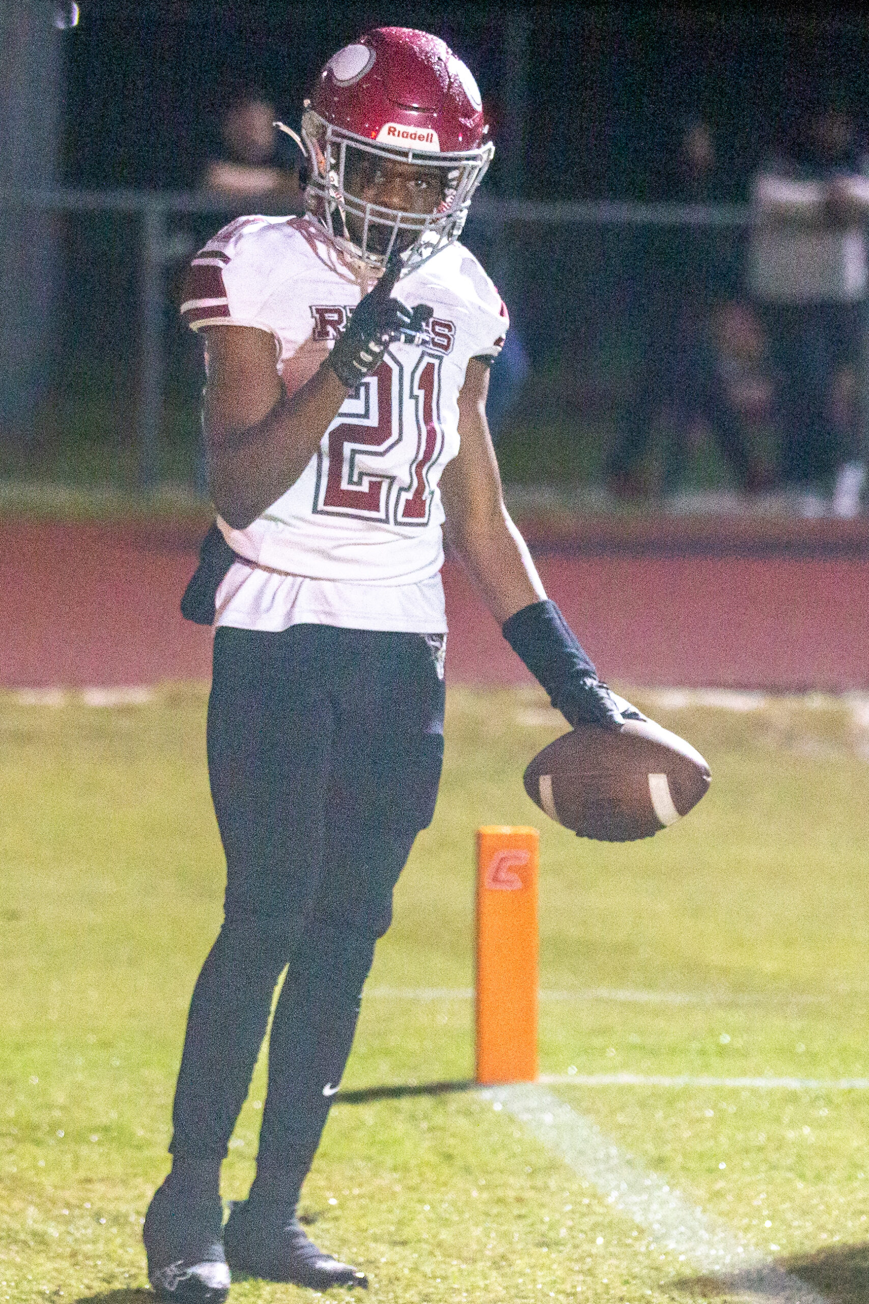 Late in the third quarter, the head official cost Raines a touchdown. He blew the whistle for an action 35 yards behind the play on a kickoff return. Instead of a 95-yard kickoff return for a score, Raines would be forced to take over at the Creekside 40 yard line after Creekside cut the Raines lead to 22-15.