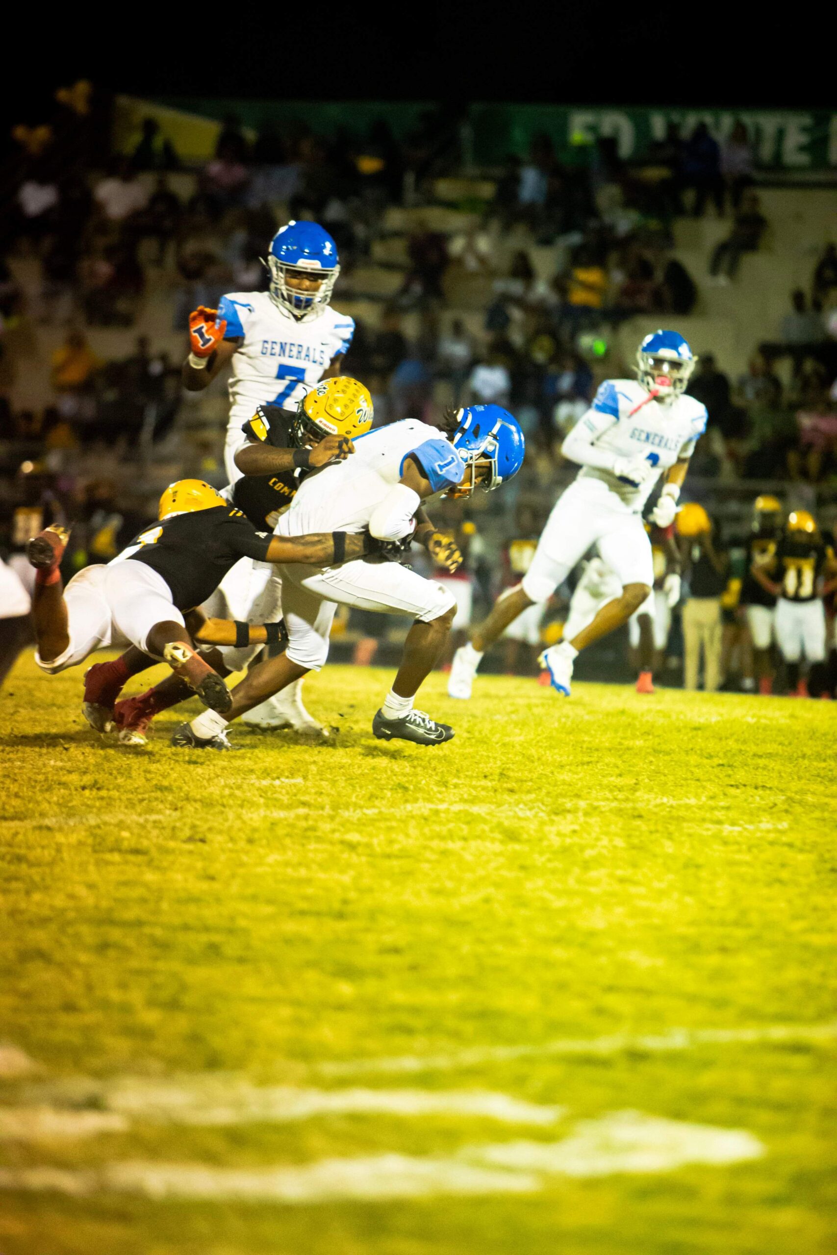 Jacksonville Fl- The Ed White Commanders hosted the Riverside Generals on Senior Night in a thrilling matchup to determine the 4A District champions. From the first snap, both teams displayed intensity and heart, but it was the Commanders who emerged victorious, clinching a dramatic 21-20 win.
