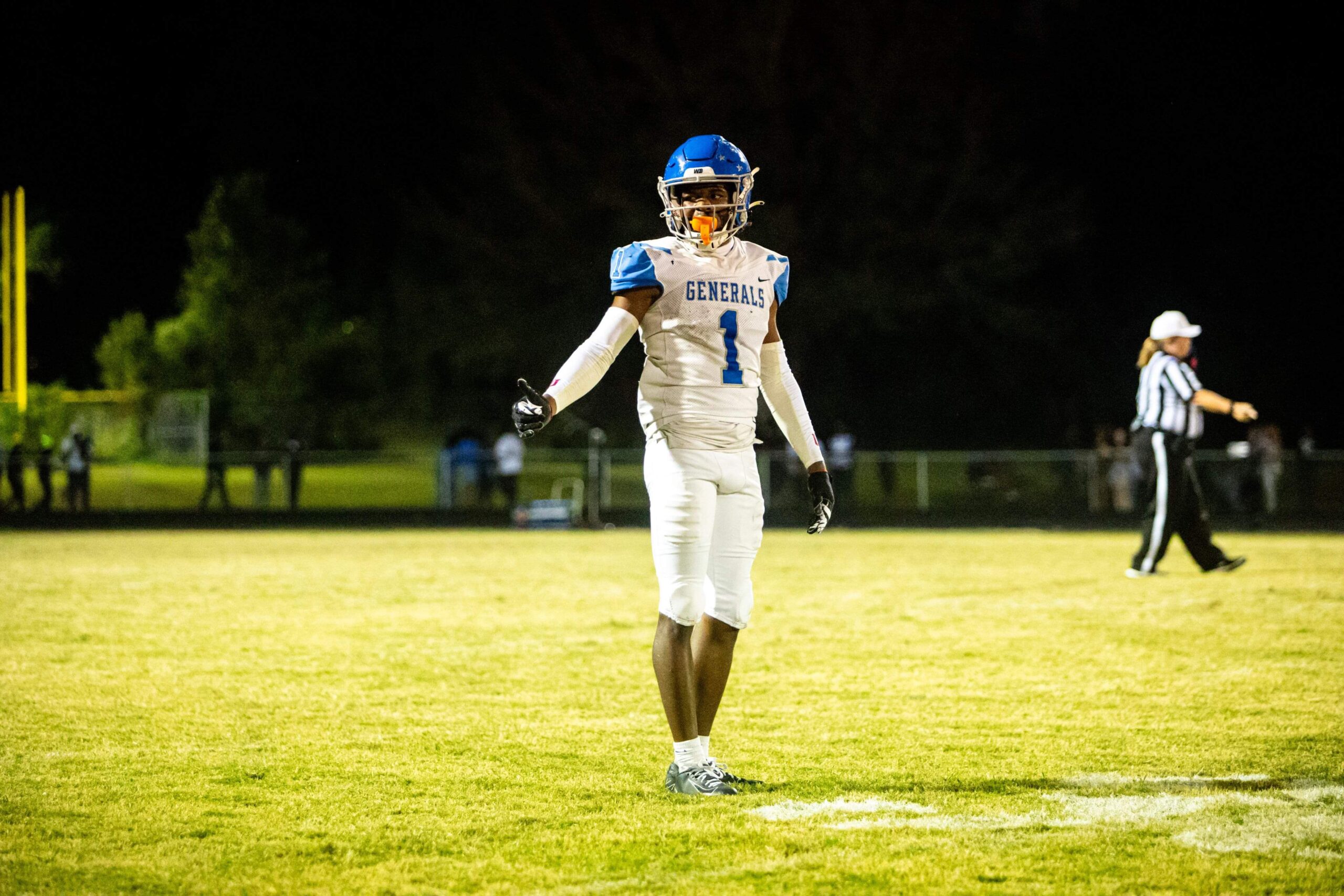 The Generals wasted no time getting on the scoreboard. Riverside’s Shermon Davis charged into the end zone on an early run, giving the Generals an initial 6-0 lead. But Ed White’s defense answered in spectacular fashion. Davonte Mango intercepted a Riverside pass, racing into the end zone for a pick-six, which shifted the momentum and gave the Commanders a 7-6 lead.