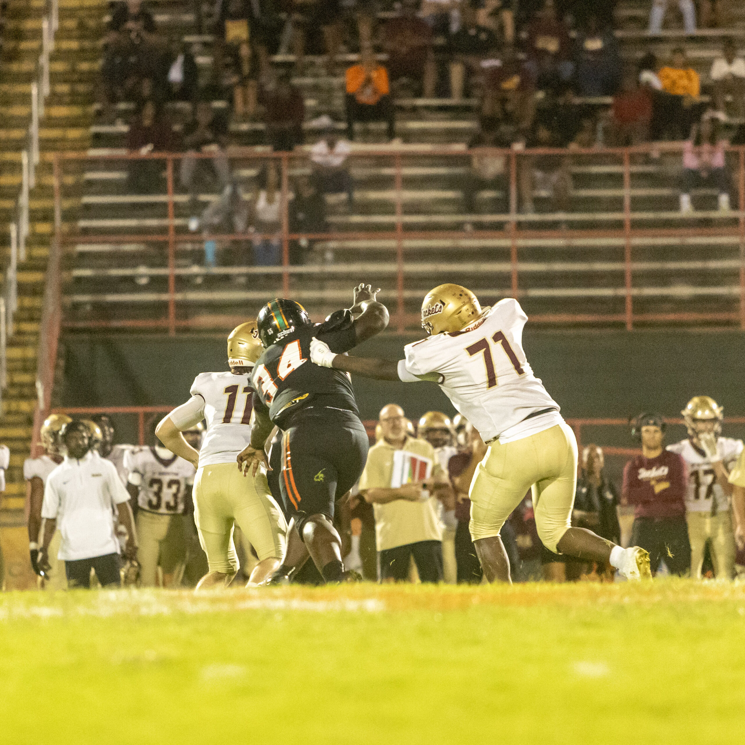From the start, St. Augustine established control, with Jayquan Lee bulldozing through the Mustang defense at the goal line to give the Yellow Jackets an early 7-0 lead. The team continued its momentum when quarterback Locklan Hewlett connected with Durrell Preston, capping off the first quarter with a commanding 14-0 advantage.