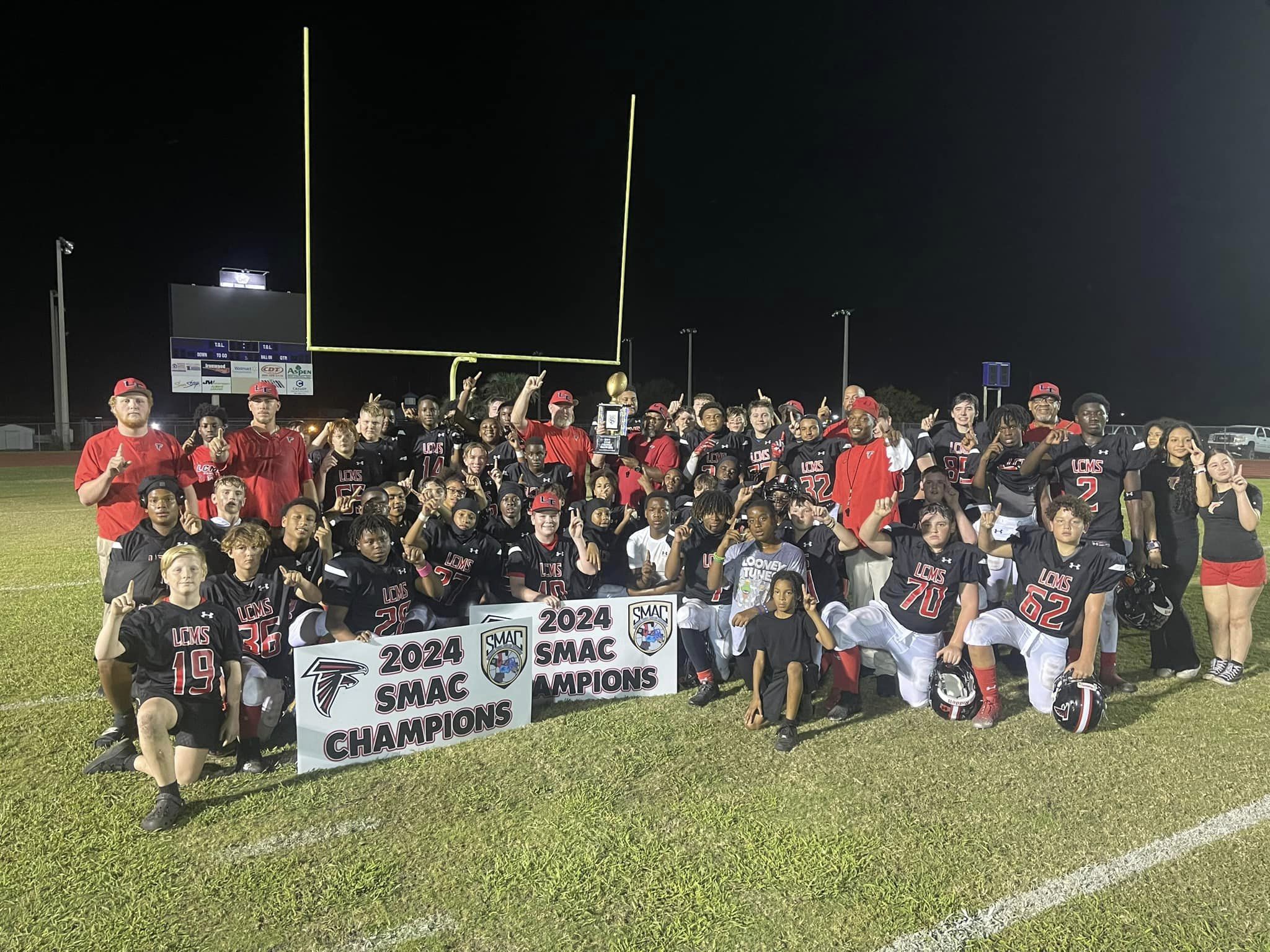 The Lake City Falcons were crowed champions of the SMAC. The Falcons defeated Suwanee 49-0, Lake Butler 22-0, and PK Yonge 46-0 in the regular season. In the playoffs, they defeated Palatka 39-12, before fittingly shutting out Williston Middle 14-0 in the championship game. The team boasted some of the most gifted athletes in North Florida.