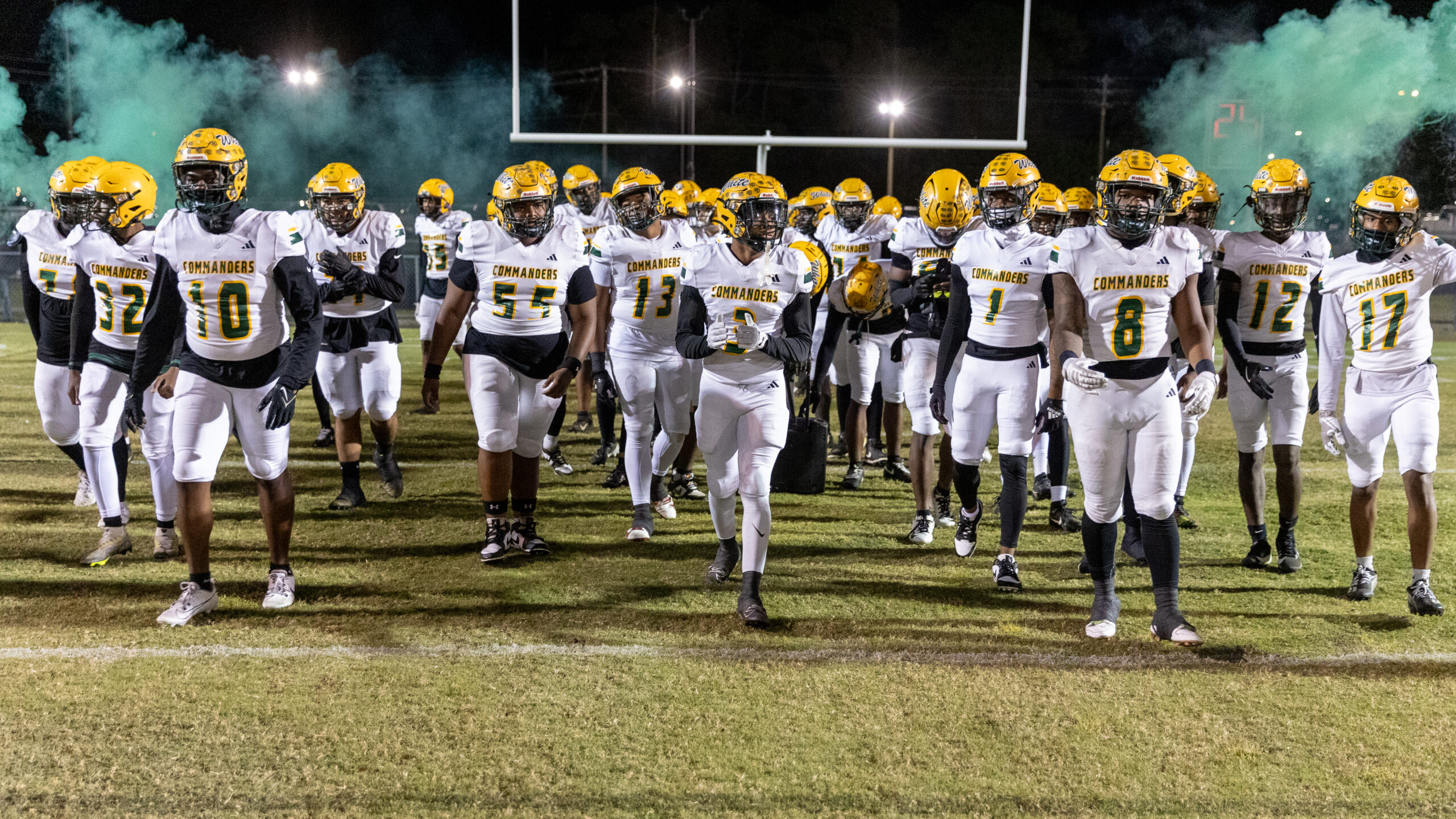 Ed White might have caught a break. St. Augustine stumbled on fourth and 2 to give the Commanders the ball at their own 15.