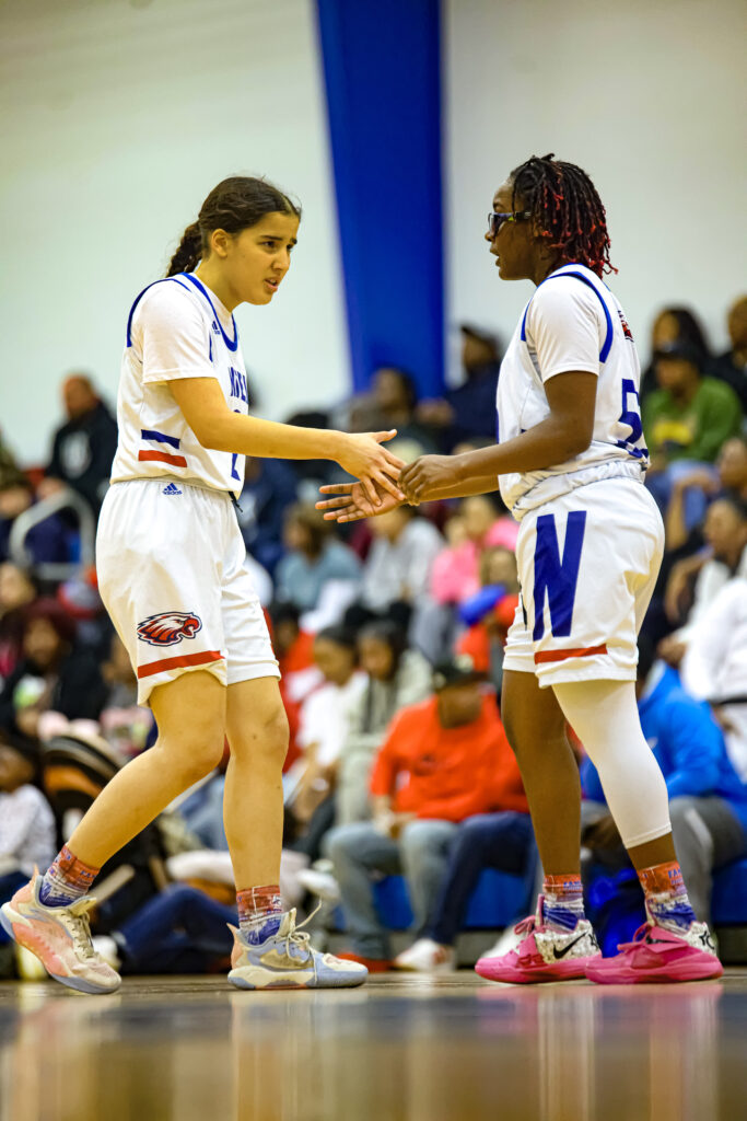 From the opening tip-off, both teams showed why they deserved to be in the state semifinals. NFEI and CFCA traded baskets in the first half, keeping the score close. Jannell Houston and Beyonce Jedinie knocked down shots to erase a CFCA lead that got up to seven points. Sawsan Kamara hit a big three pointer for NFEI in the second quarter, and at halftime CFCA held just a one point lead.