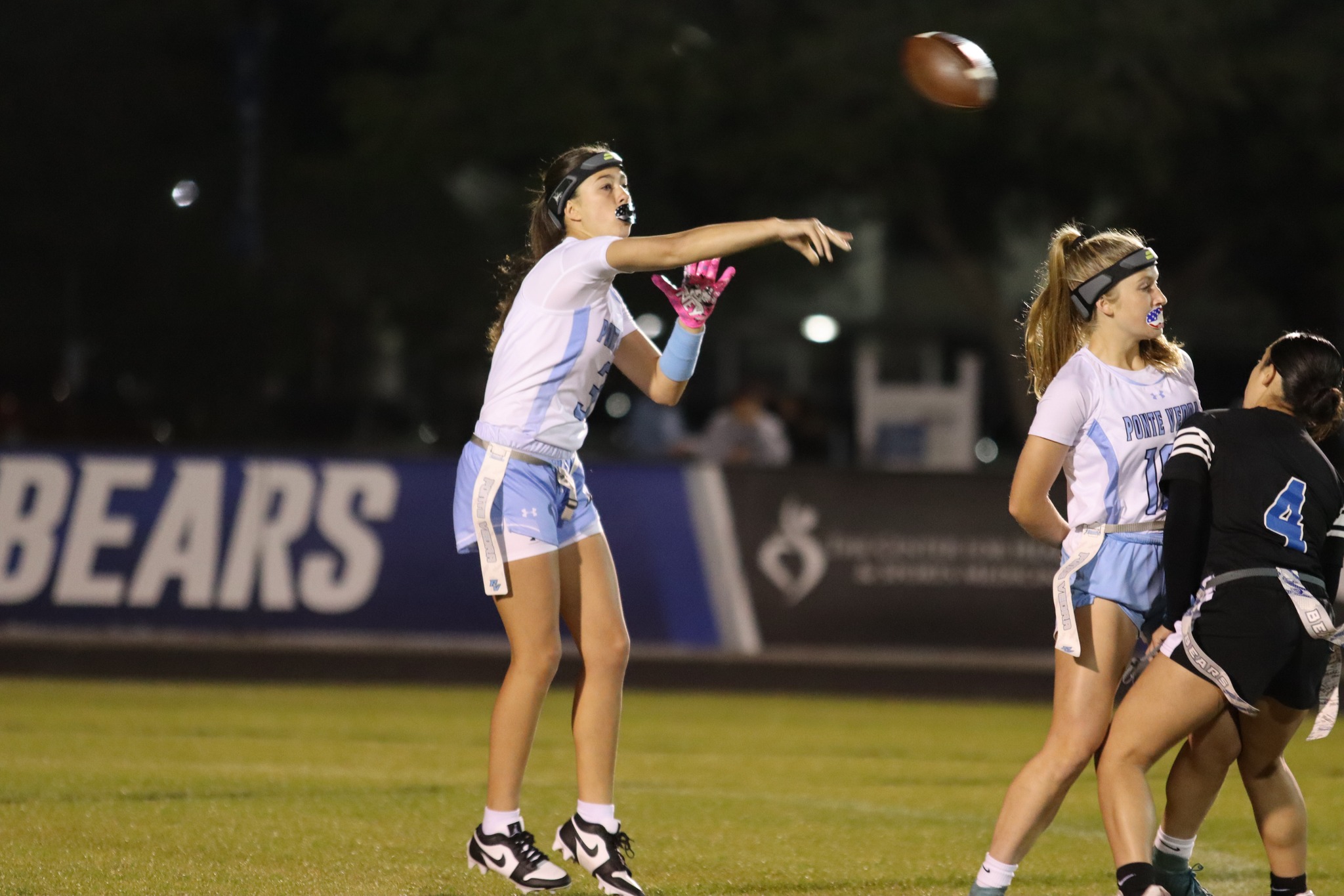 St Johns Fl- Ponte Vedra’s flag football squad continued its impressive season with a commanding 18-7 victory over Bartram Trail. The Sharks, led by quarterback Izzy Murray and a dominant defense, controlled the game from start to finish.