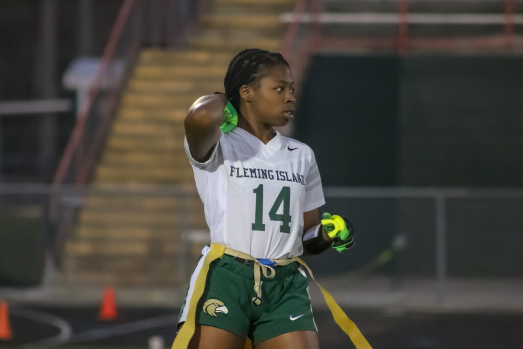 Quarterback Grace Brown has passed for 867 yards and 10 TDs coming into the contest with Fleming Island. Senior Shadae Reid leads the team with 215 yards rushing and a score. She also has 9 sacks, and leads the team in tackles (17).