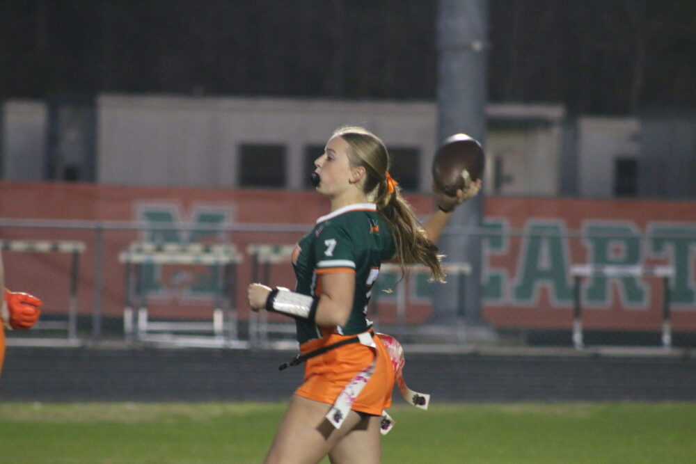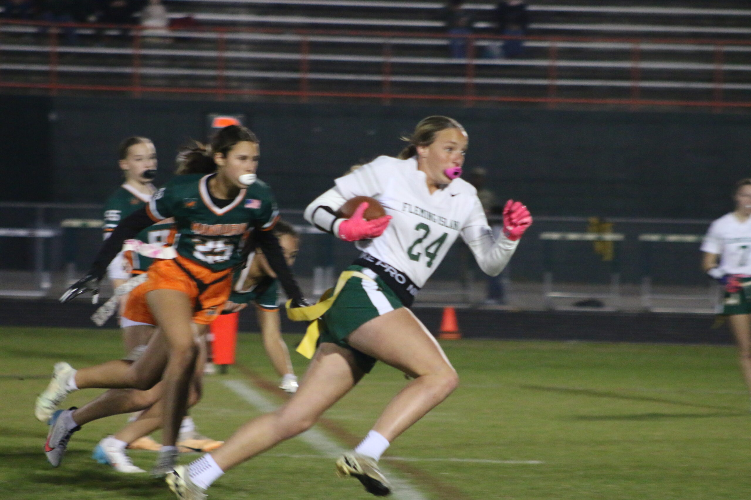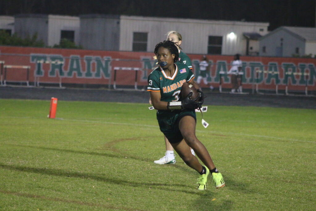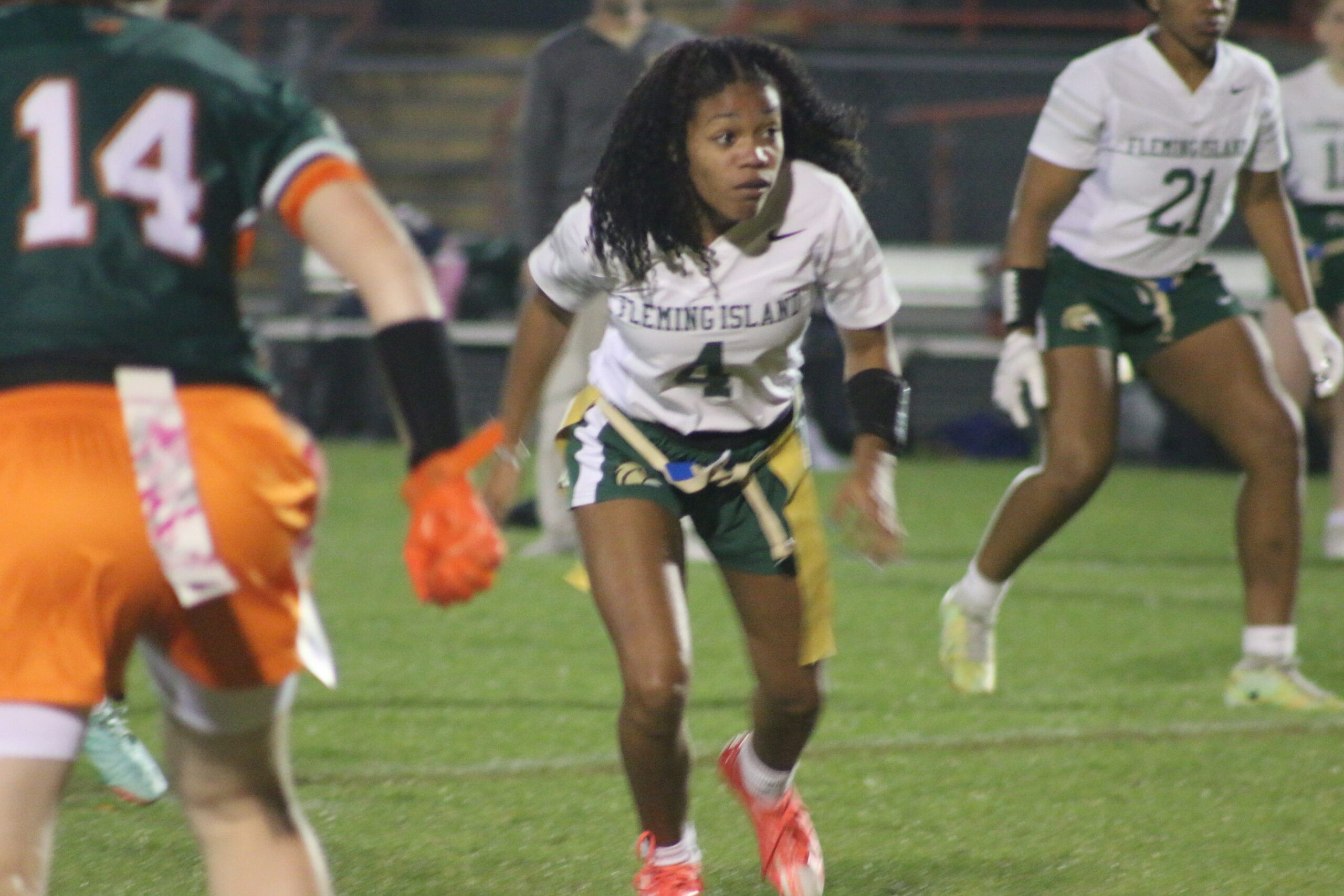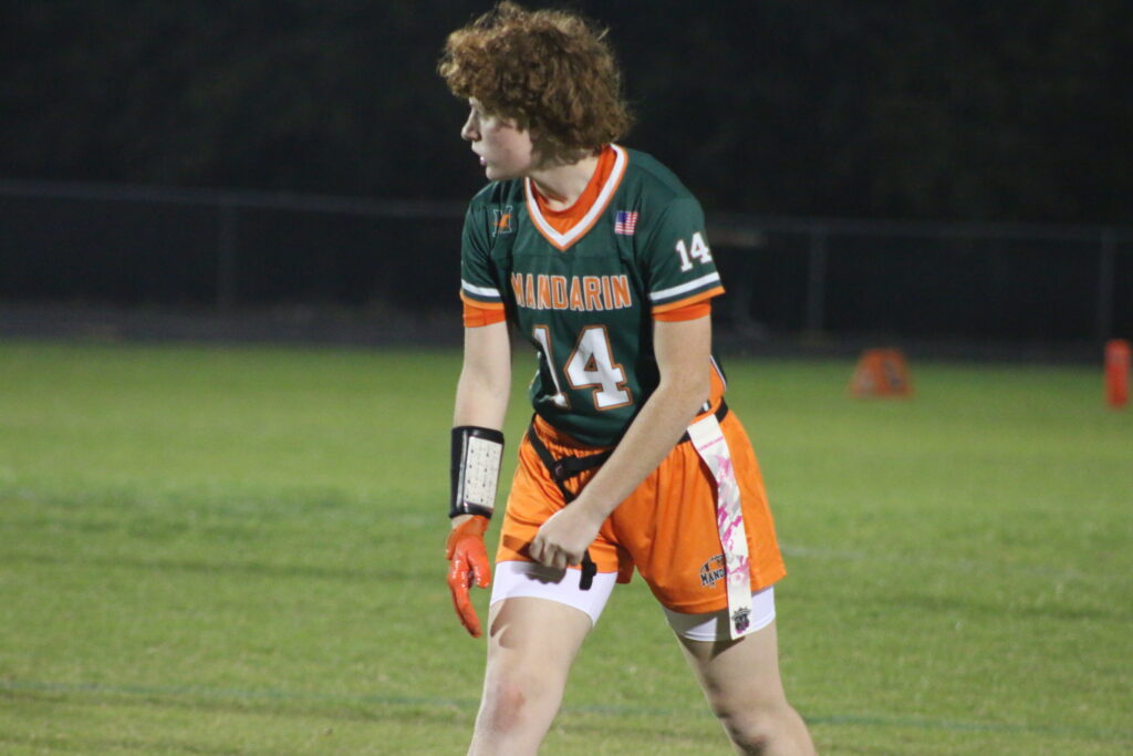 Jacksonville Fl- The Fleming Island Flag Football team made it four wins in a row with a huge 12-7 win at Mandarin High Thursday night. The Mustangs came in with a 4-1 record, but the Golden Eagles came up with a huge defensive stand in the final minutes of the fourth quarter to secure the win.