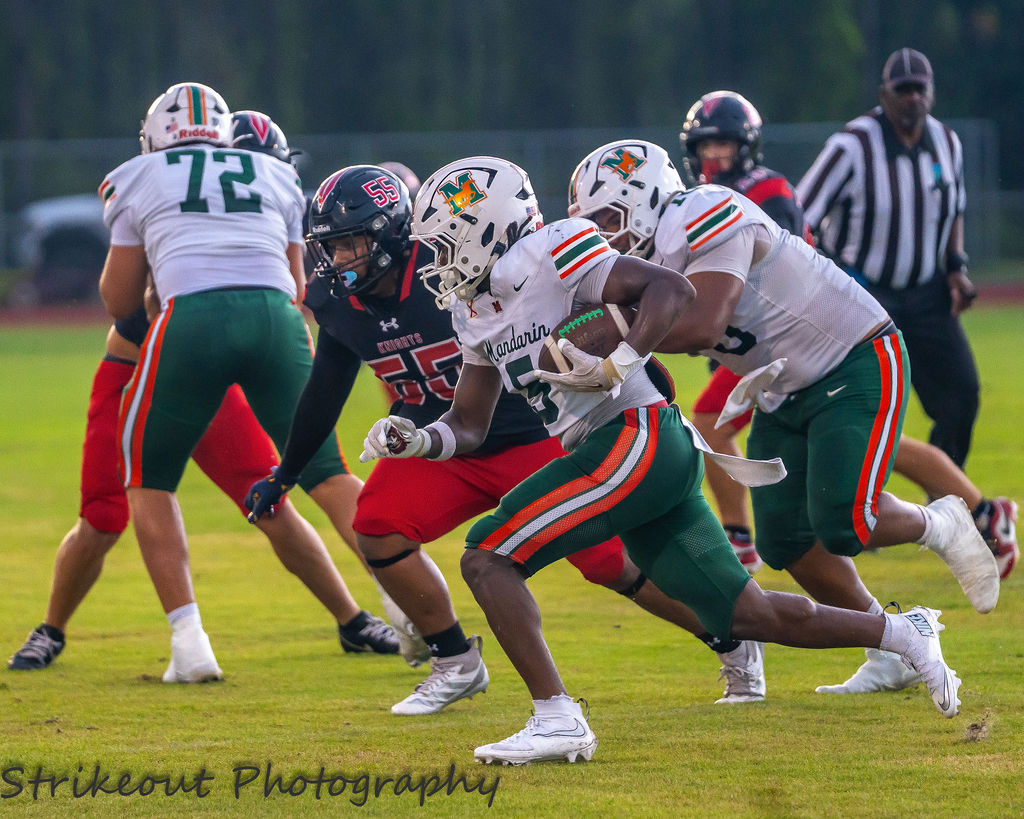The big swing came late in the second quarter when Brysen Wright returned his interception for a pick-6, pushing the lead to 29–7 heading into halftime. Wright also led Mandarin in tackles with 8 on the night.