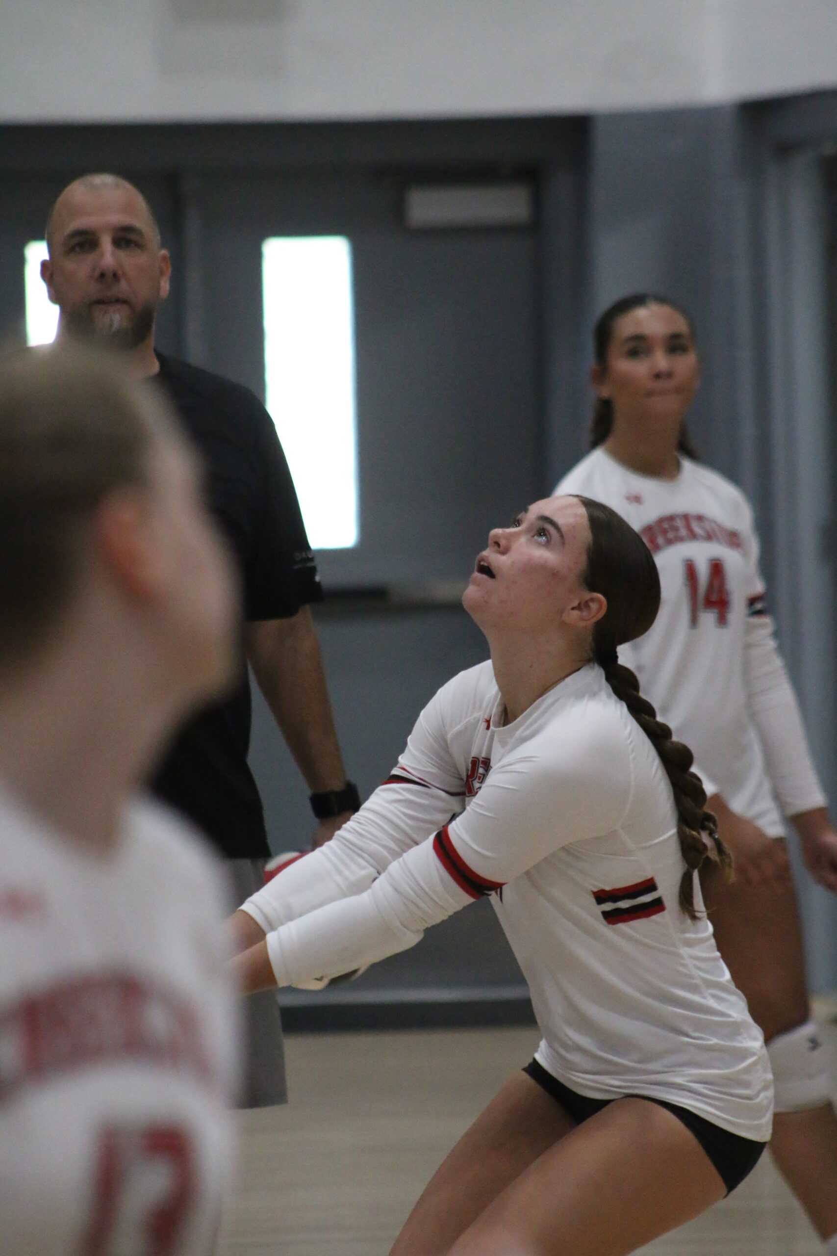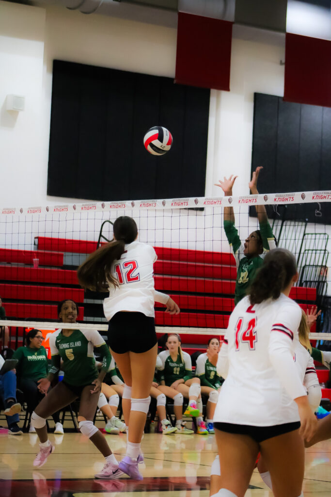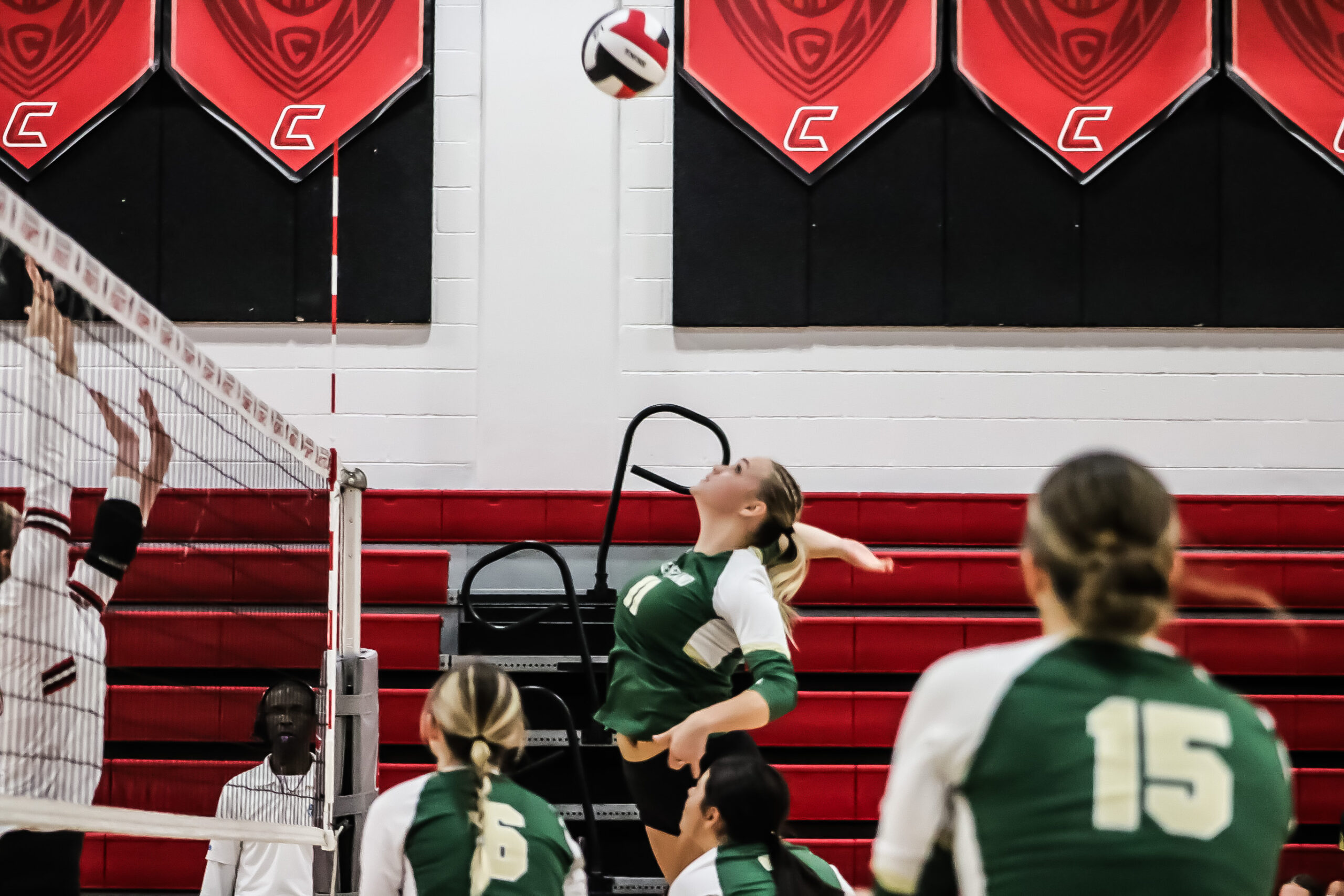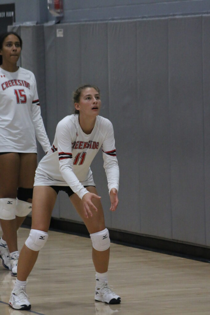 Against Creekside, the Golden Eagles completely overwhelmed the Lady Knights. Creekside had no answer for their serving power, and dominant front. Even when Creekside could return the attack from Fleming Island, they were met with experience and savviness of the Golden Eagles who allowed the ball to go out of bounds for points.