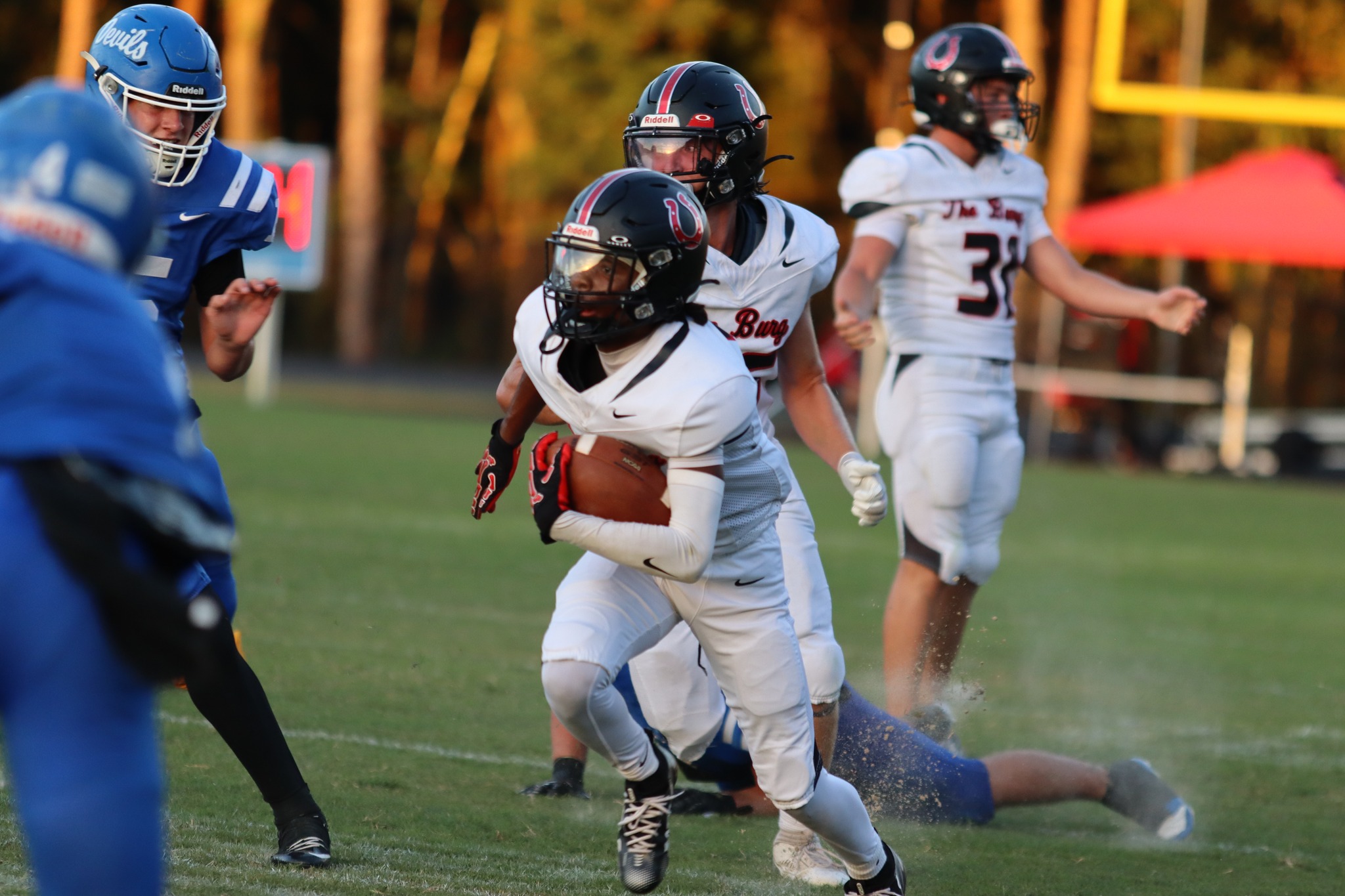 On Clay’s final possession, Hanifen stepped in front of a Martin pass for the decisive interception, sealing the Broncos’ dramatic victory. Middleburg defense stepped up big as Darius Swilley (15 Tackles, sack), Mason Peevy (14 tackles), and Dominic Swilley (13 tackles) led the team in stops.