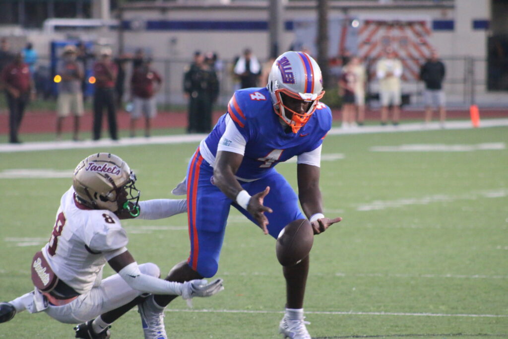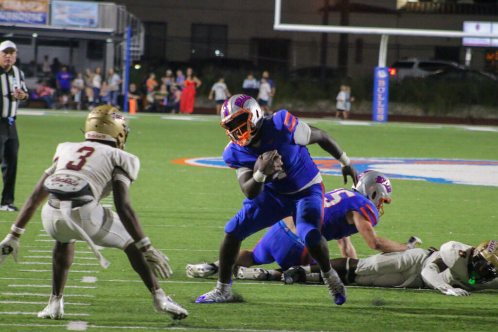 - Player Highlights / Stats: Jaden Weatherly passed for 328 yards and 2 TDs. He was the unsung hero for Bolles, leading them back to what we thought was the game winning score. However his TD pass to TE Corbyn Fordham was called back due to a very questionable holding penalty.