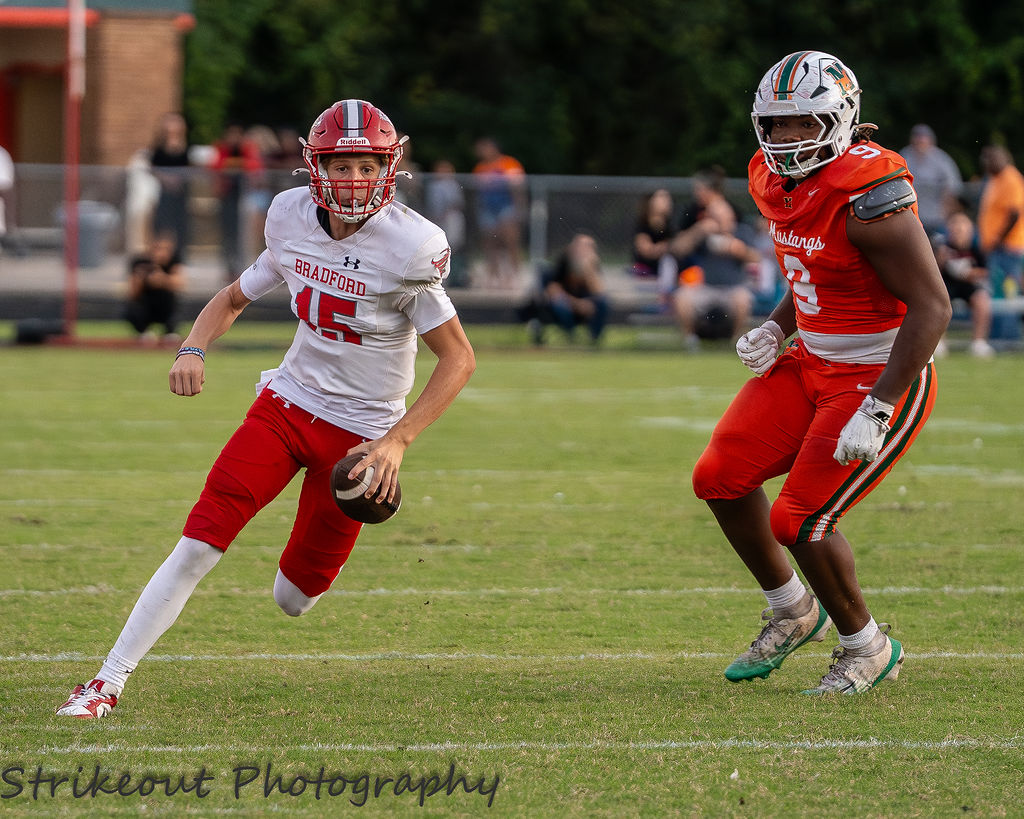 Bradford came up just short in a 14-7 battle with Mandarin but showed grit and defensive toughness. The Tornadoes’ defense kept the Mustangs in check most of the night, but the offense couldn’t overcome Brysen Wright’s game-breaking plays. Their defense couldn’t stop Mandarin’s running game late in the game that could’ve given their offense back the ball. Bradford remains one of the area’s toughest pound-for-pound teams despite the setback.