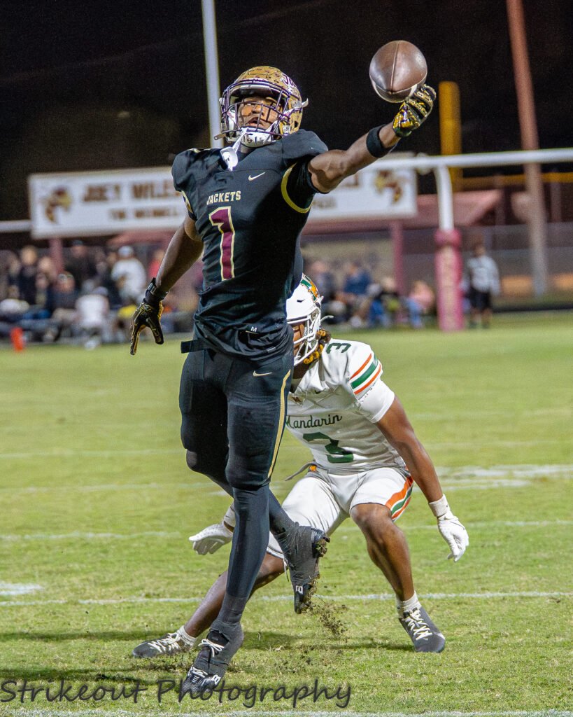 Speaking of defenses, it would be Mandarin’s defense turn to show what they were about. The Mustang defense held firm, shutting down a final St. Augustine push with an interception by Israel Ratliff on a tipped pass. The big defensive play would seal the win.