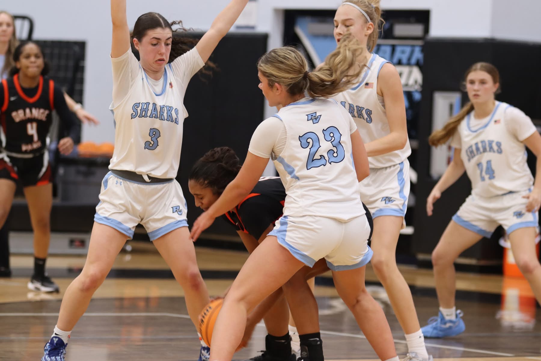 Defensively, the Sharks focused on limiting transition opportunities and forcing contested shots, a strategy that helped neutralize Orange Park’s offensive bursts. While Crowe and company worked to generate momentum with defense. Junior Jayde Brant’s hustle on a steal led to a transition assists by Crowe to sophomore Trinity Dinkins for the basket to kept them in the contest.