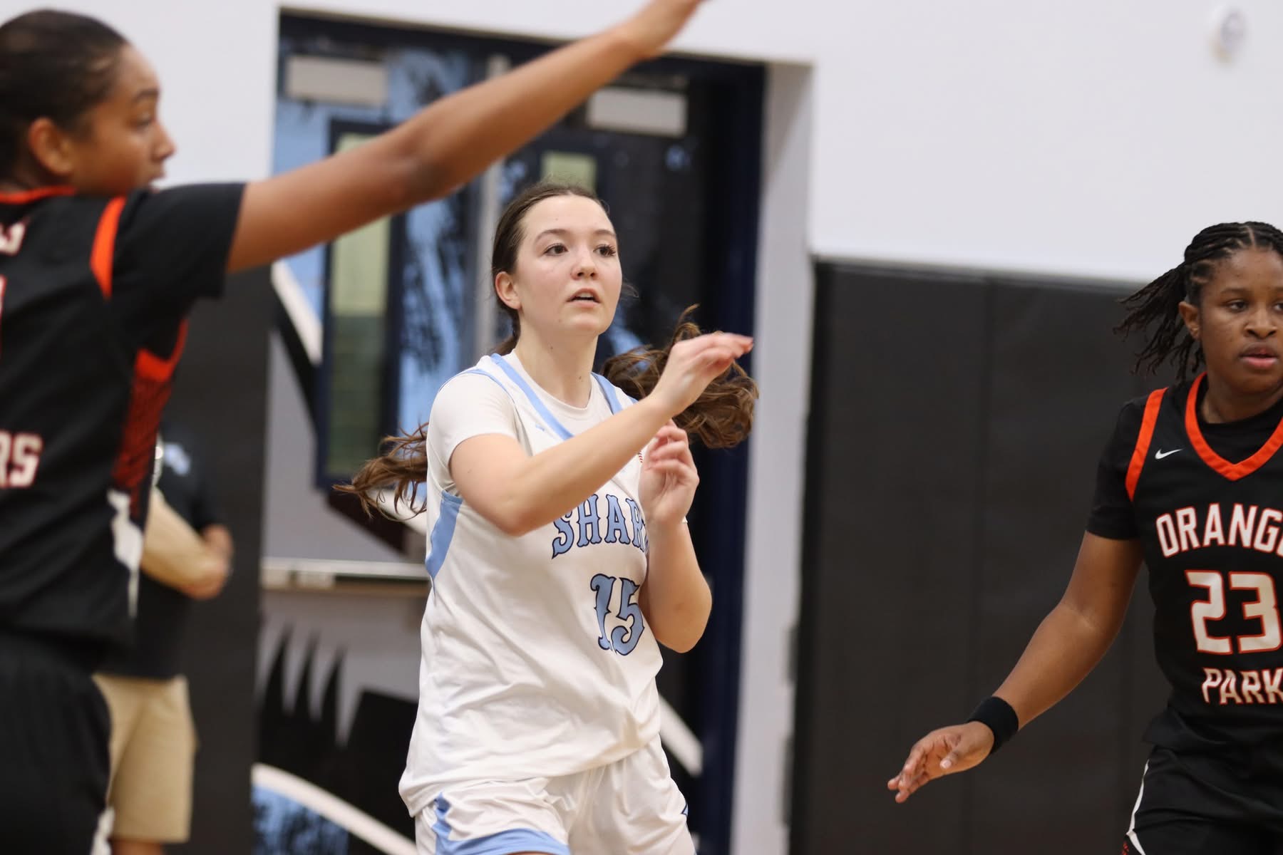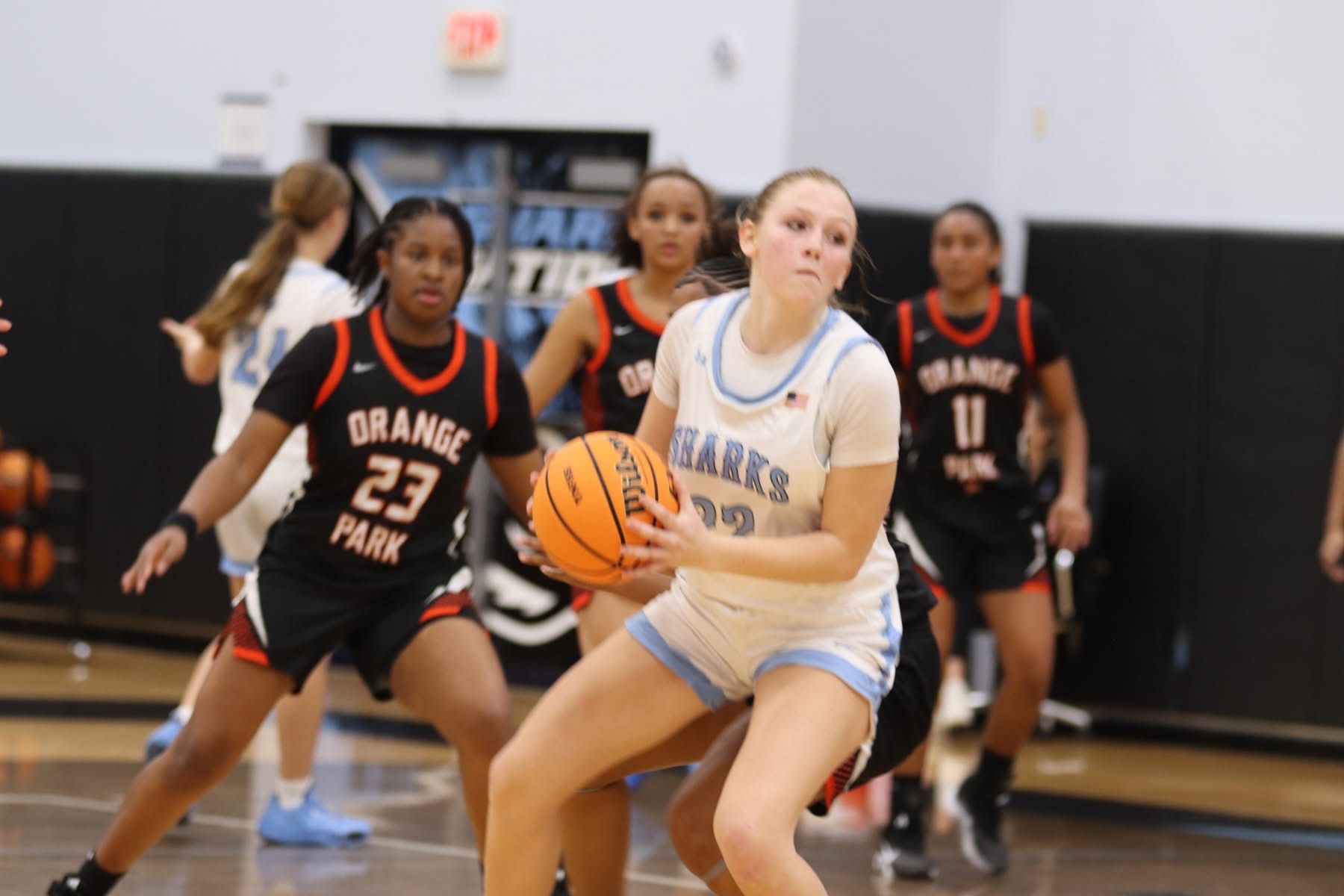 From the opening tip, the Sharks controlled the tempo with disciplined half-court execution and aggressive defensive rotations. Hoffmann quickly found her rhythm, attacking off the dribble and knocking down perimeter shots to keep Orange Park on its heels. She led all scorers with 22 points, delivering a poised and efficient performance that set the tone throughout the game.