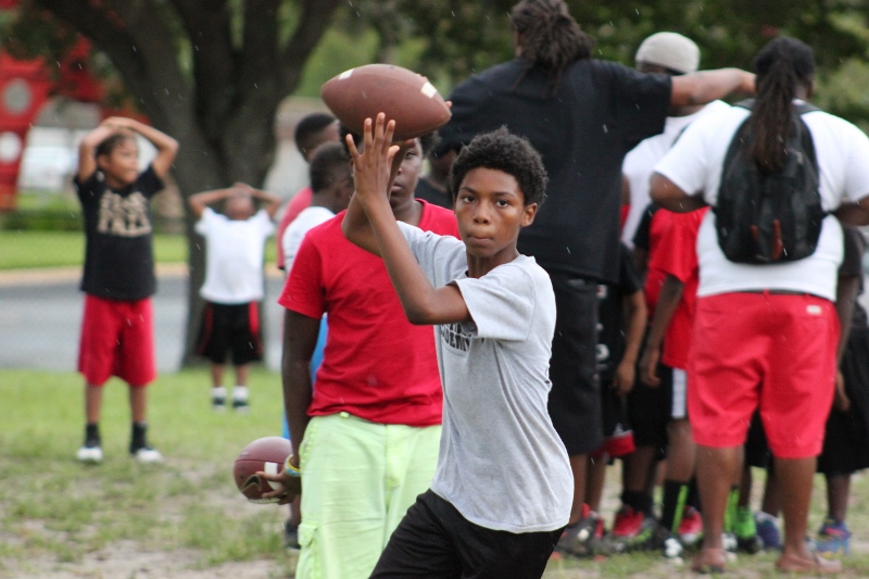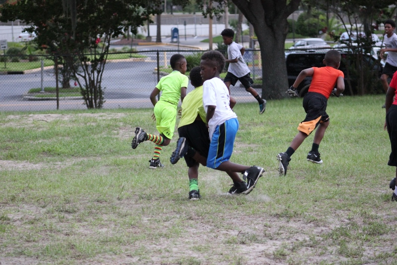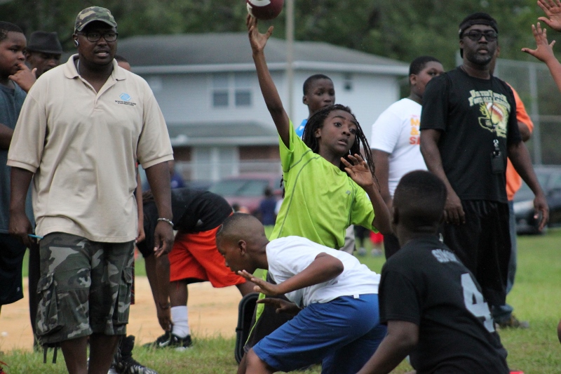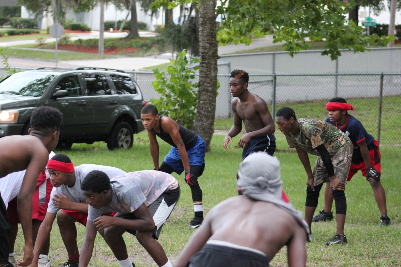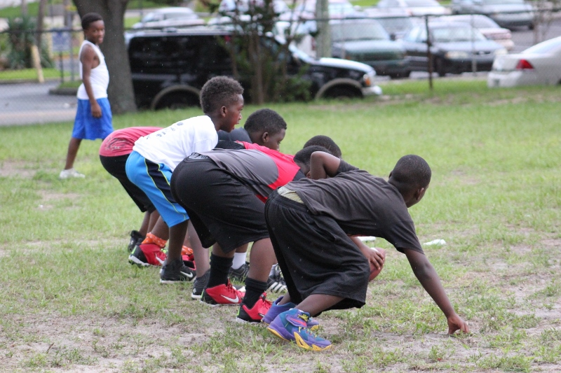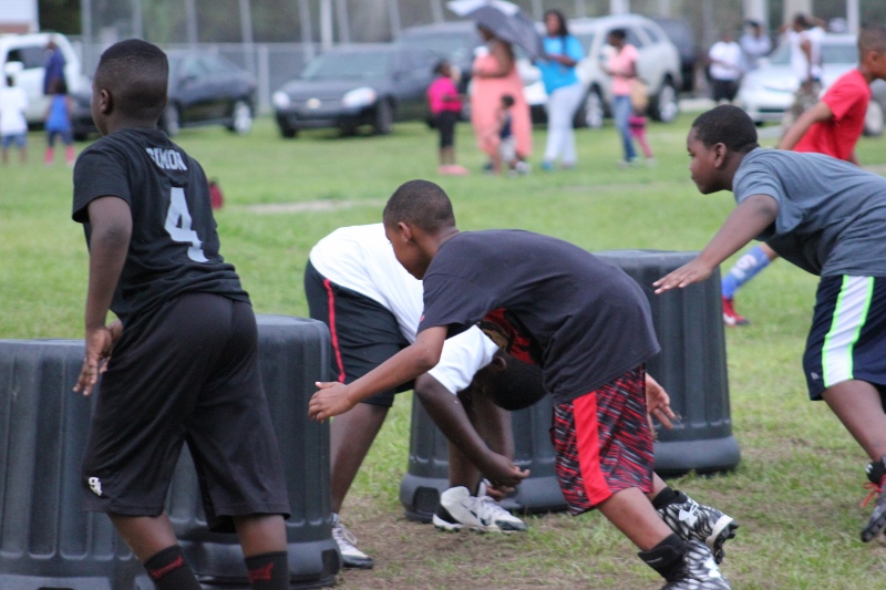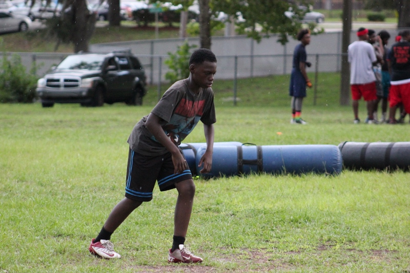 As the summer afternoon storms rolled in for their daily onslaught, the Forever Life Achiever Vikings continued to work hard through the light drizzle that rained down on the Julius Guinyard-Jefferson St Park. Hard work is no stranger to many of the youth and families that F.L.A serves. Located off Jefferson Street in downtown Jacksonville, the association services many inner city and low-income families that work hard every day to make an honest living. It’s not just a practice habit for these youth and parents, it’s a way of life; And hard work has them dreaming hard in hopes of a garnering championships this season.