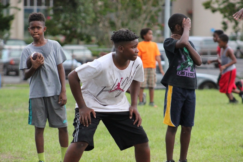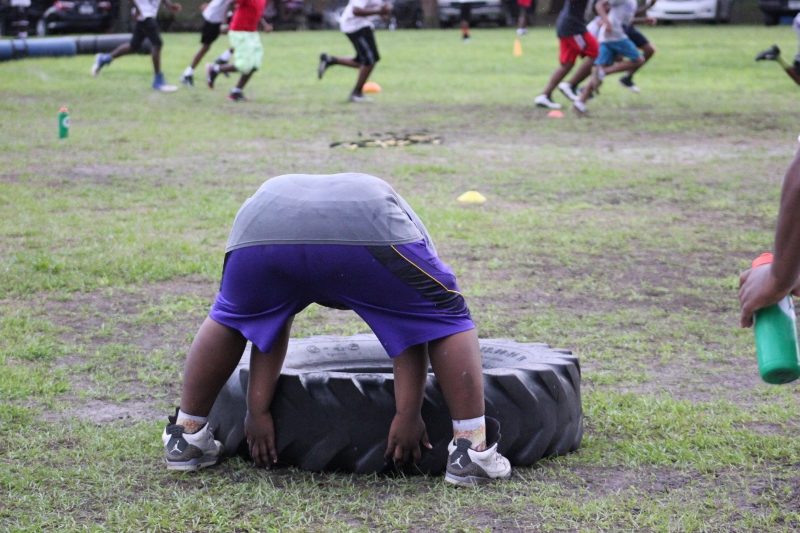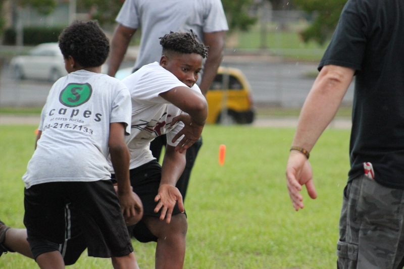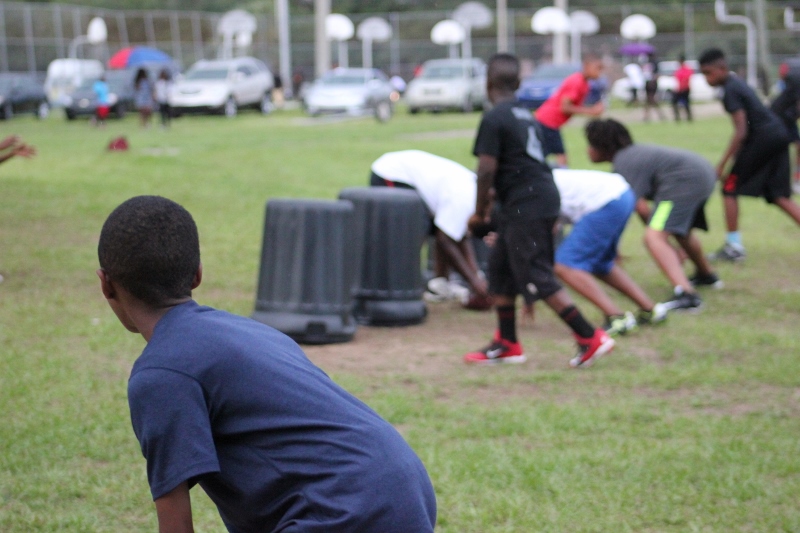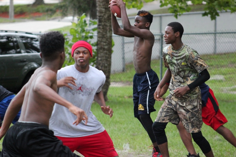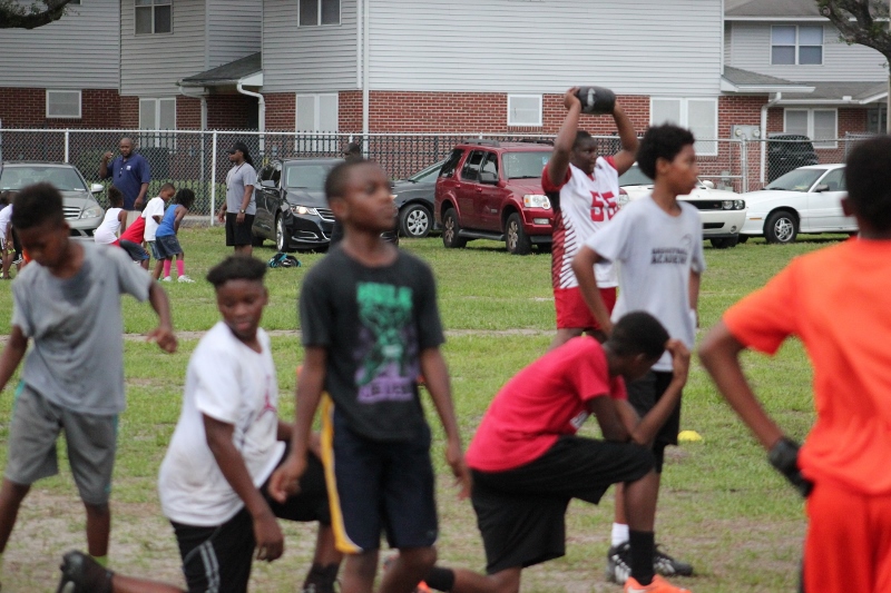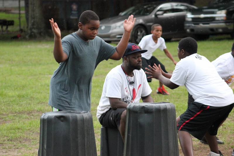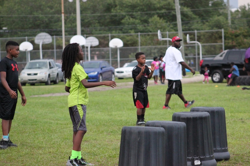 As the summer afternoon storms rolled in for their daily onslaught, the Forever Life Achiever Vikings continued to work hard through the light drizzle that rained down on the Julius Guinyard-Jefferson St Park. Hard work is no stranger to many of the youth and families that F.L.A serves. Located off Jefferson Street in downtown Jacksonville, the association services many inner city and low-income families that work hard every day to make an honest living. It’s not just a practice habit for these youth and parents, it’s a way of life; And hard work has them dreaming hard in hopes of a garnering championships this season.