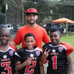 Coach Julio Santiago admitted that he and the rest of the coaches had butterfly’s before their game versus the Saints. It wasn’t because they didn’t know what was coming from their opponent, but they wern’t quite sure what they would see form their own team. With only three returning starters, the 8U Cowboys are virtually starting from scratch. Yet after their performance in this first game on a rain soaked field, one could easily conclude that the coaches liked what they saw. The Cowboys were led by the triplets #3 Ephrian Wright, #2 Julio Santiago Jr, and #1 Troy Hillman.