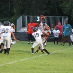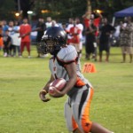 These three were all over the field on offense and defense making plays where ever the ball was. One play that seemed to set the tone for the game was a jarring hit by Santiago that made the crowd erupt. Reminiscent of his play at Sandalwood and Bolles, Coach Santiago was very pleased with the running back’s hard running, including the joy of watching his son play. This joy was shown by the effort his team gave on this evening. The Saints effort was top notch as well. They were able to get into the end-zone, and conduct a goal-line stand late in the contest. But it wasn’t enough as the Cowboys ran away 28-6.