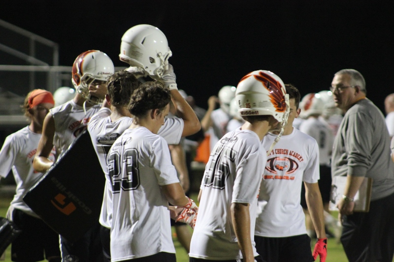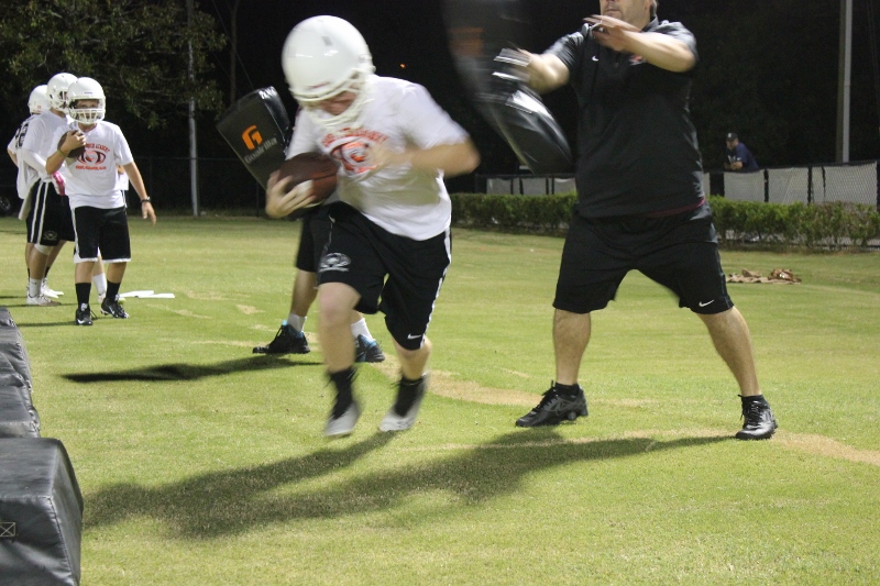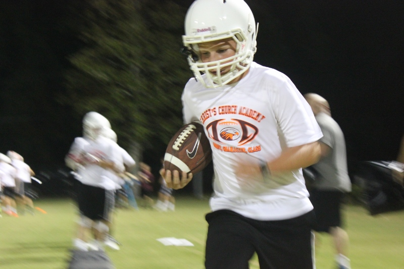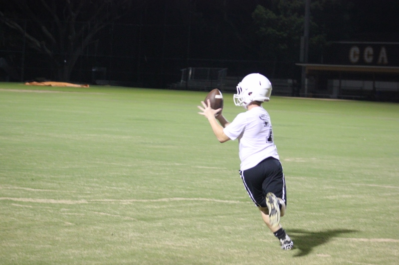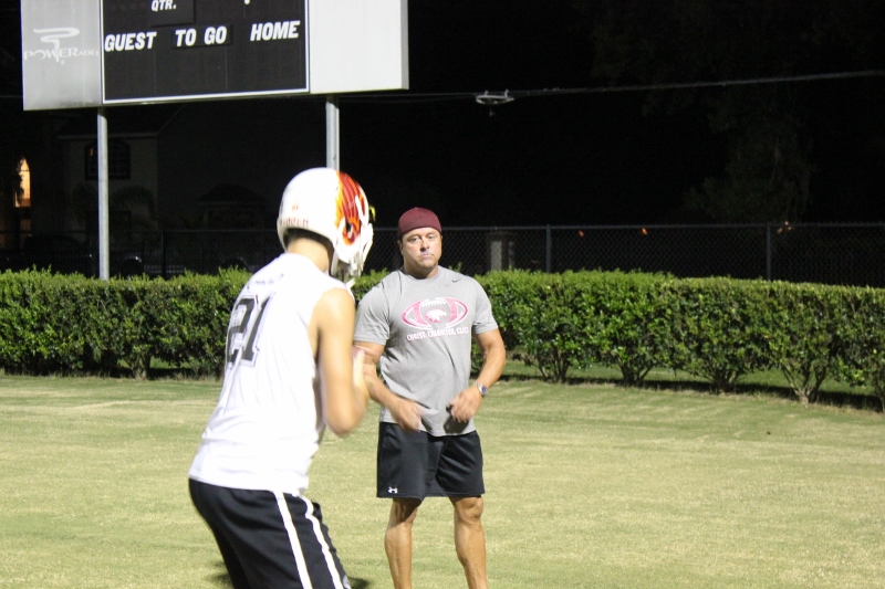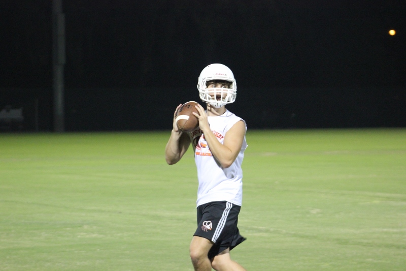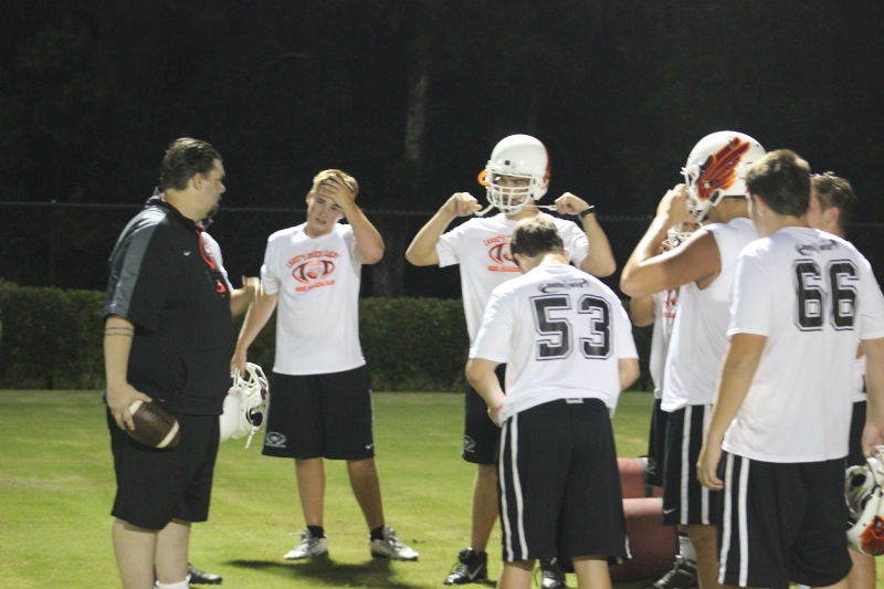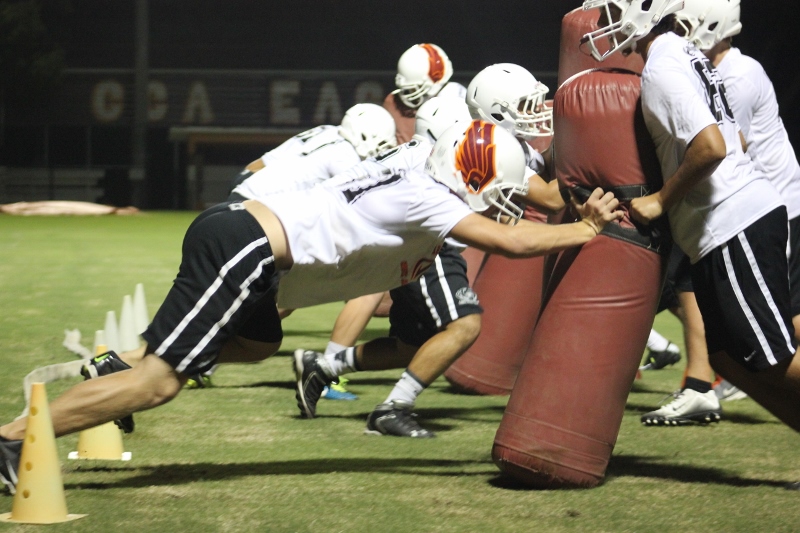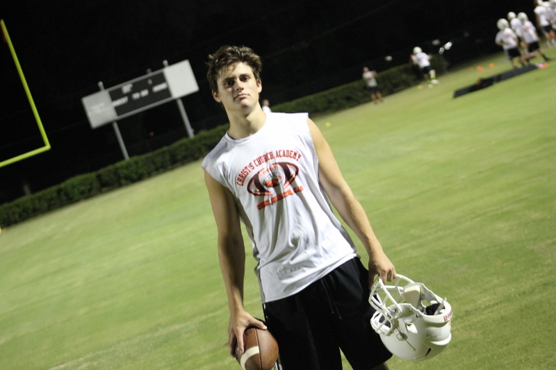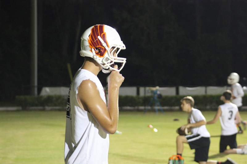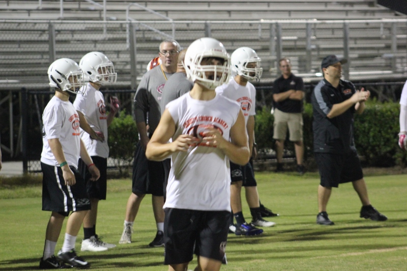 Cole Berger, a senior RB /MLB has been with the team all four years. He can feel the difference that Coach Stomps brings in his senior campaign. ” Coach Stomps is like a father to me. He’s really transformed this team in the short amount of time that he’s been here. It’s a totally different philosophy this year”. One of these differences includes the practices. Christ’s Church began their 2015 fall campaign at 12:01 am August 3rd. Florida High School teams aren’t allowed to have official practices until August 3rd, and Coach Stomps decided to take advantage of every minute allowed by the FHSAA. “We have a goal to be the first team to practice and the last team to practice this year. We want the kids to be excited and get them to be uncomfortable.”