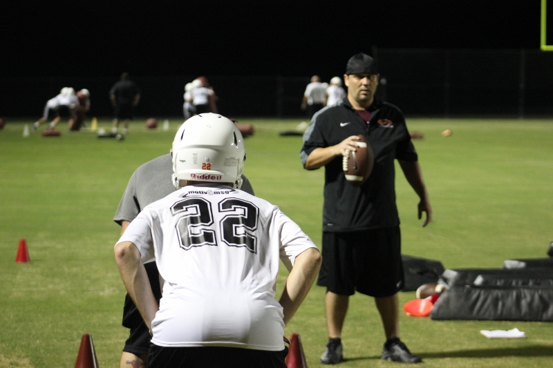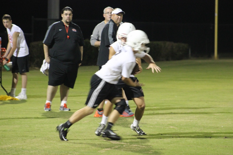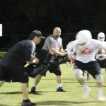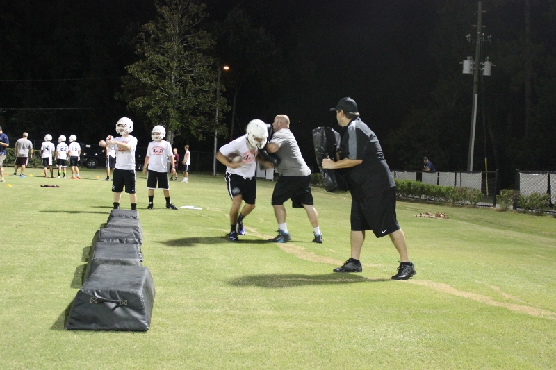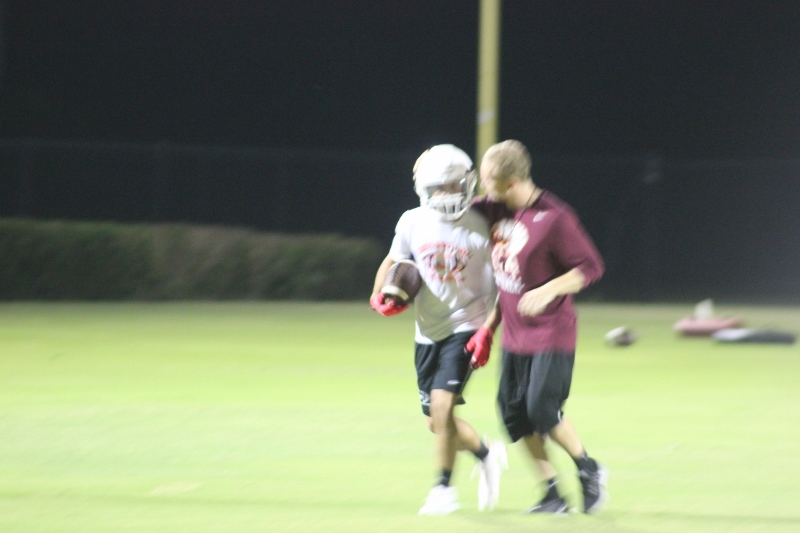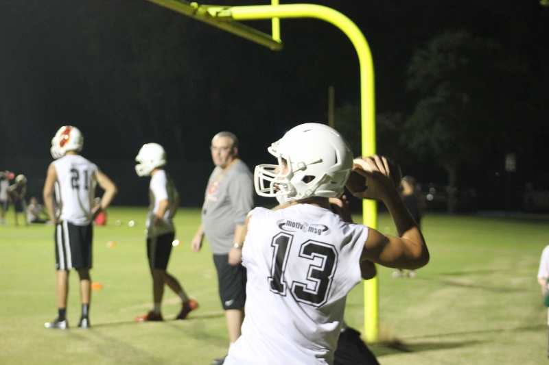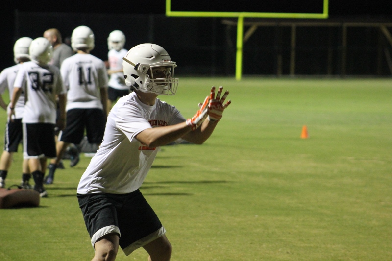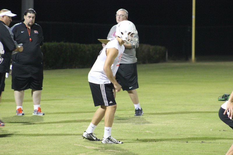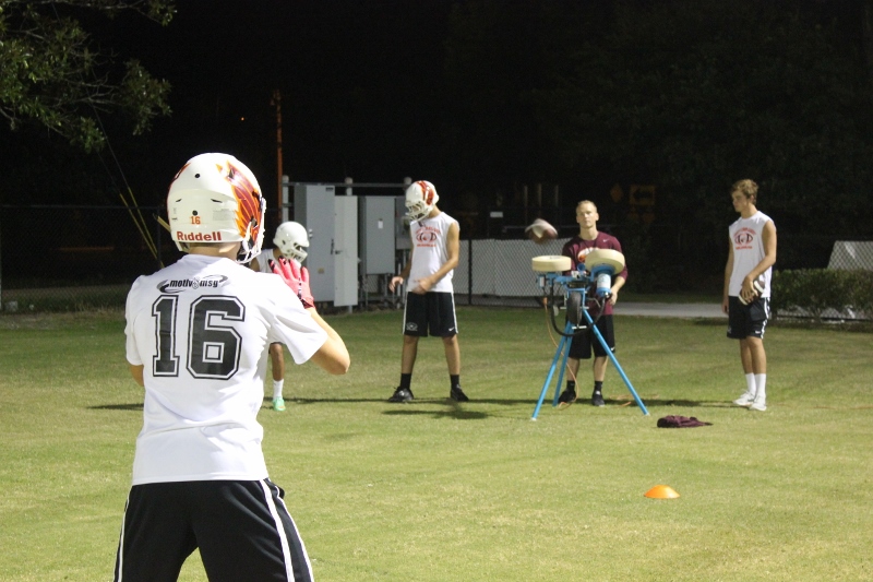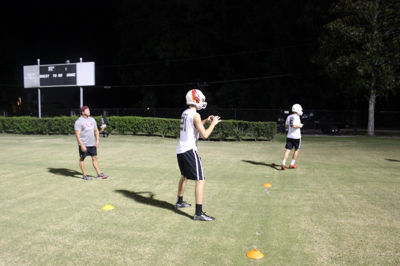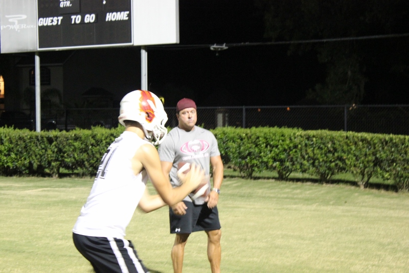 Cole Berger, a senior RB /MLB has been with the team all four years. He can feel the difference that Coach Stomps brings in his senior campaign. ” Coach Stomps is like a father to me. He’s really transformed this team in the short amount of time that he’s been here. It’s a totally different philosophy this year”. One of these differences includes the practices. Christ’s Church began their 2015 fall campaign at 12:01 am August 3rd. Florida High School teams aren’t allowed to have official practices until August 3rd, and Coach Stomps decided to take advantage of every minute allowed by the FHSAA. “We have a goal to be the first team to practice and the last team to practice this year. We want the kids to be excited and get them to be uncomfortable.”