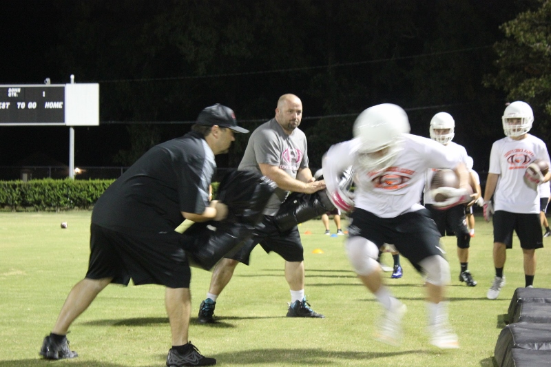 Coaches like Chris Kinnett -Offense, David Lamp – Running Backs, Josh Payne O-Lineman Coach , and Brian Fowler- Strength and Conditioning have all taken hold of the players psyche. Fowler’s enthusiasm strengthens the players mind and body. Payne is affectionately known as the ” Boss Hog” and has given his offensive line the same name of the famous Washington Redskins offensive line ” The Hogs”. Kinnett’s ability to mentor young men is invaluable. Last year he was the head coach of the Creeks Junior Pee Wee team who won a city championship, regional championship and made it to the Pop Warner National Championship in Orlando. Coach’s like this make the difference and it started the moment Stomps stamped his approval on them to lead his team. And the message as been received well by the players.